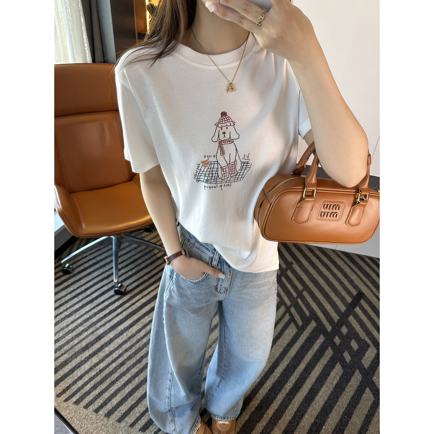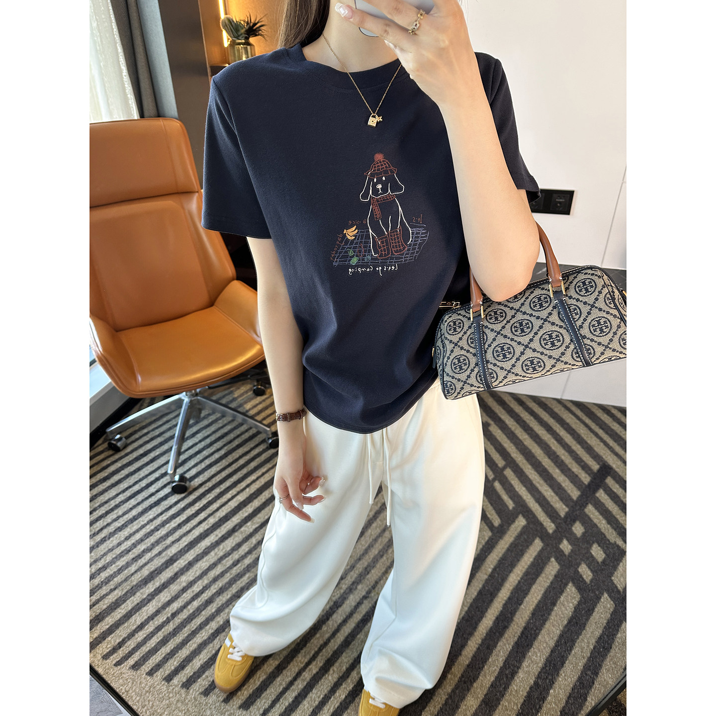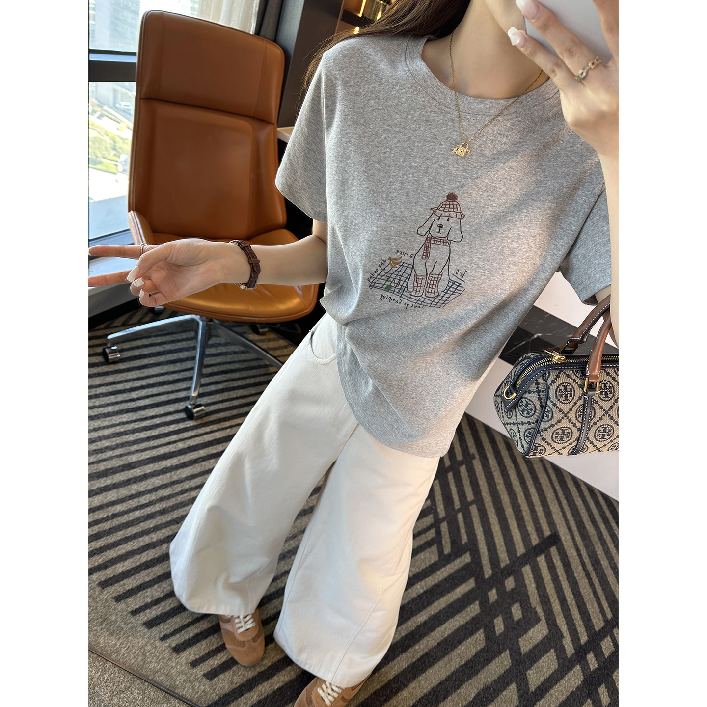 春季 小狗T恤女2026新款 复古宽松慵懒上衣 韩系圆领短袖 穿搭救星