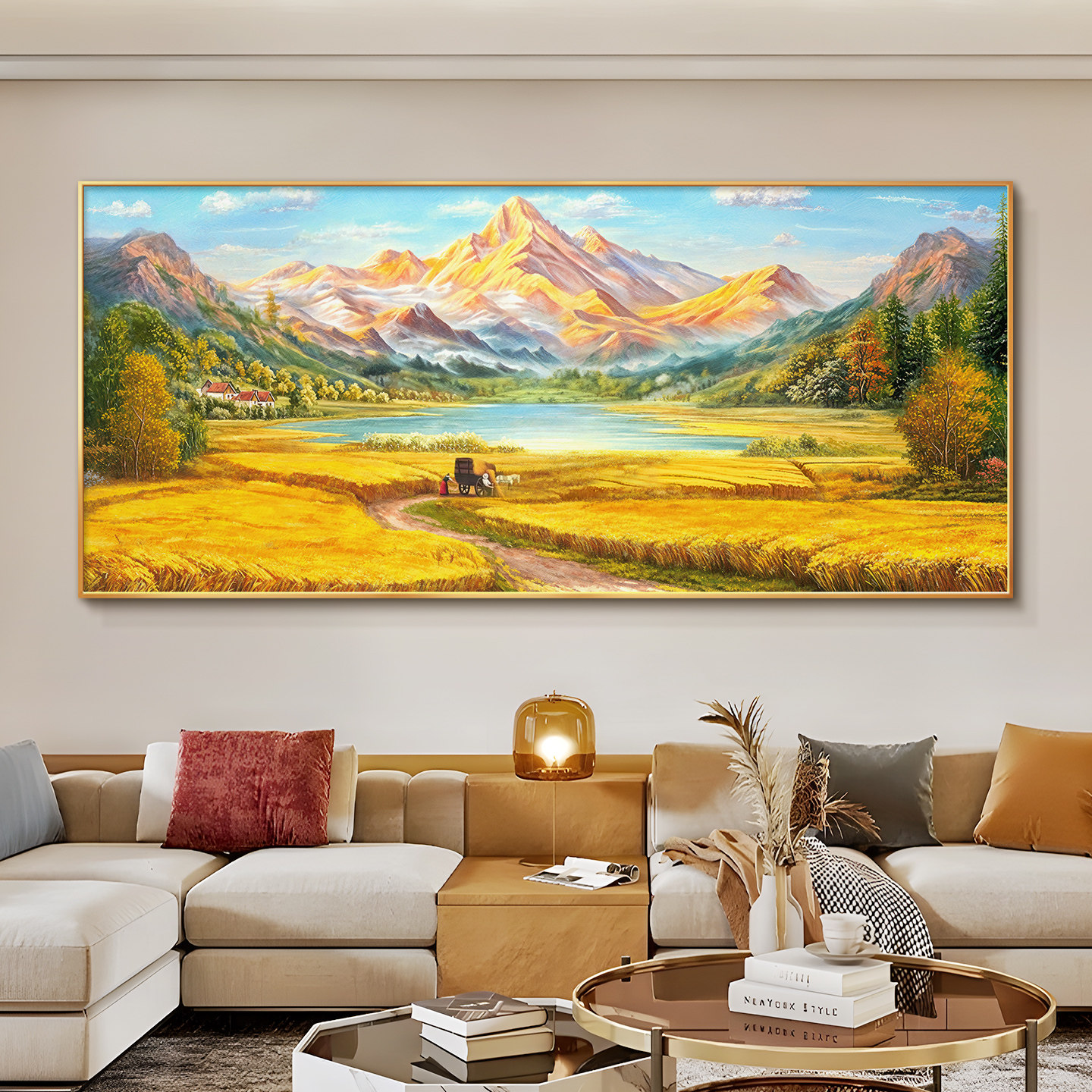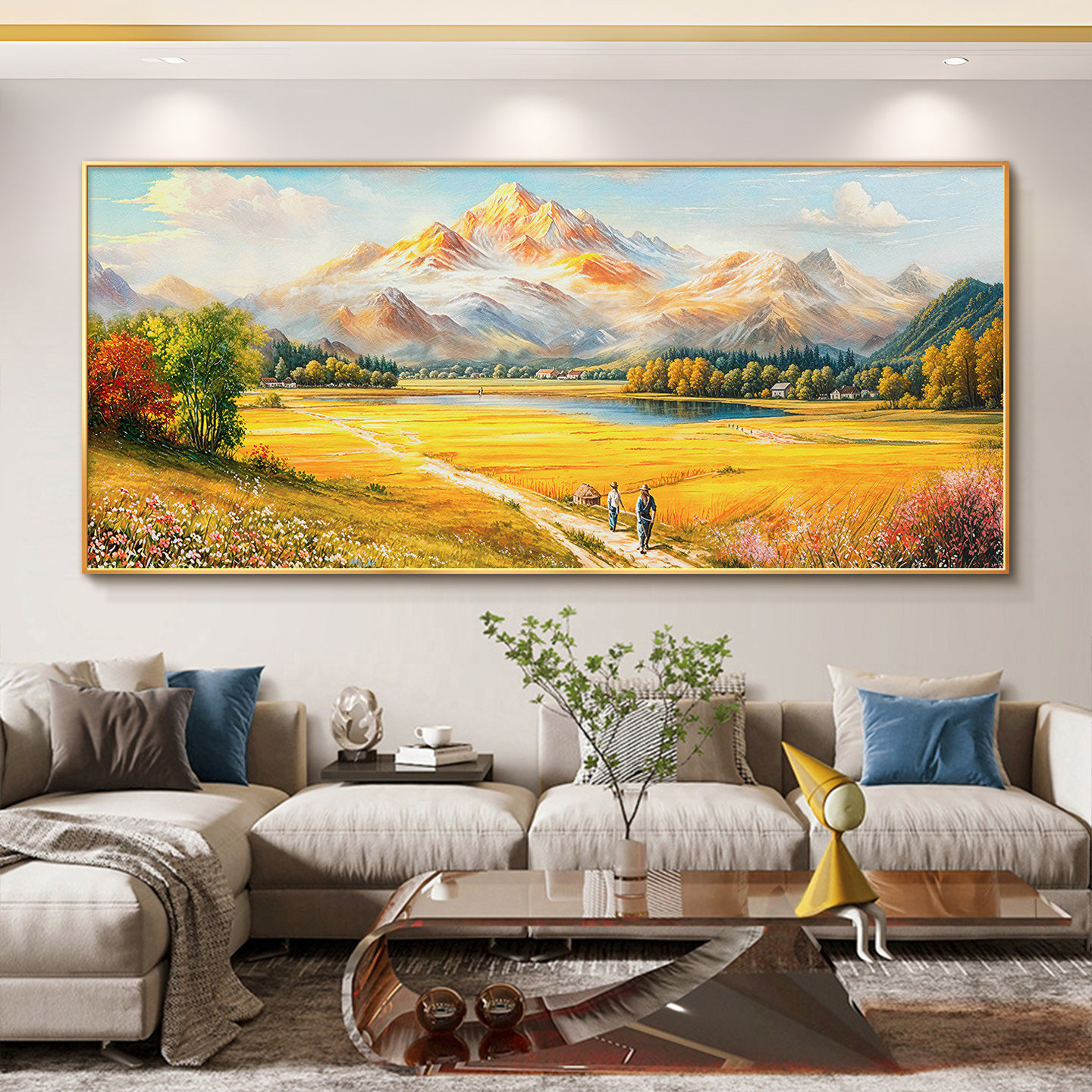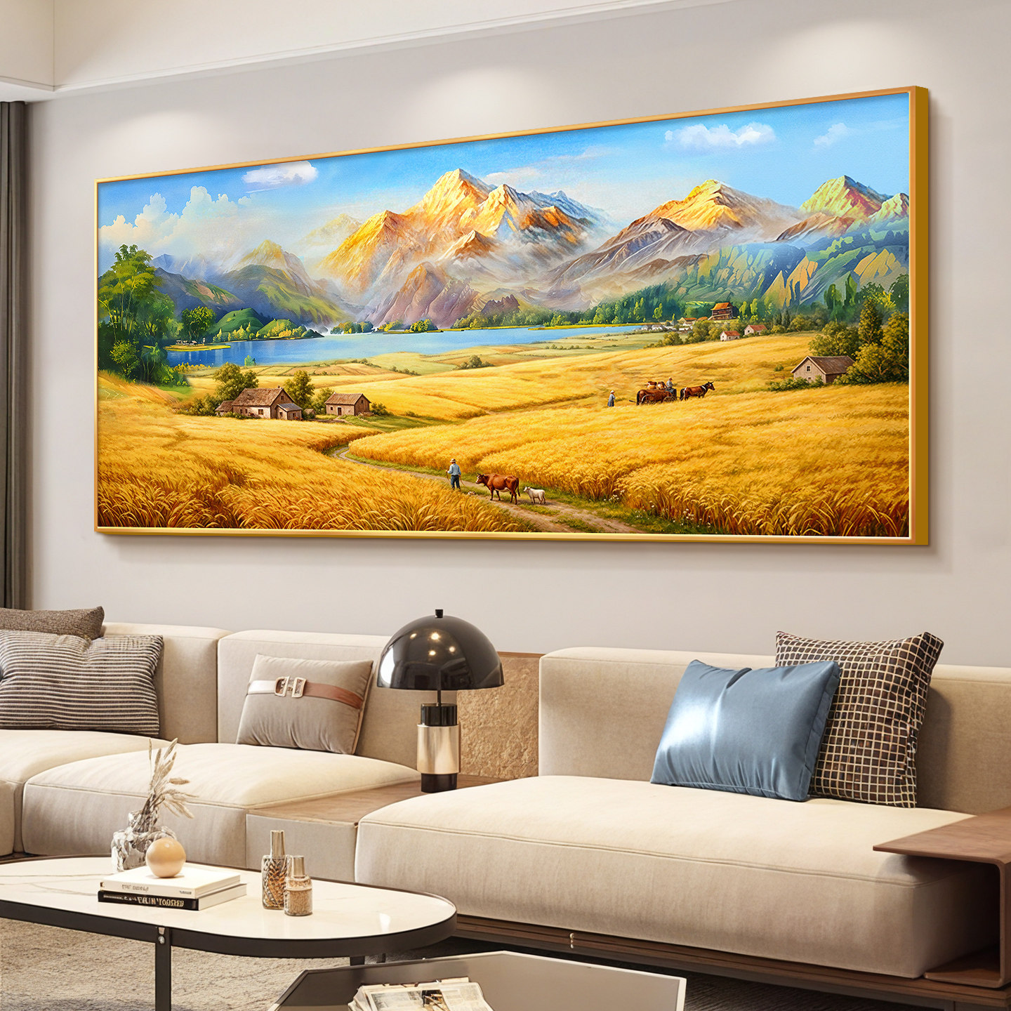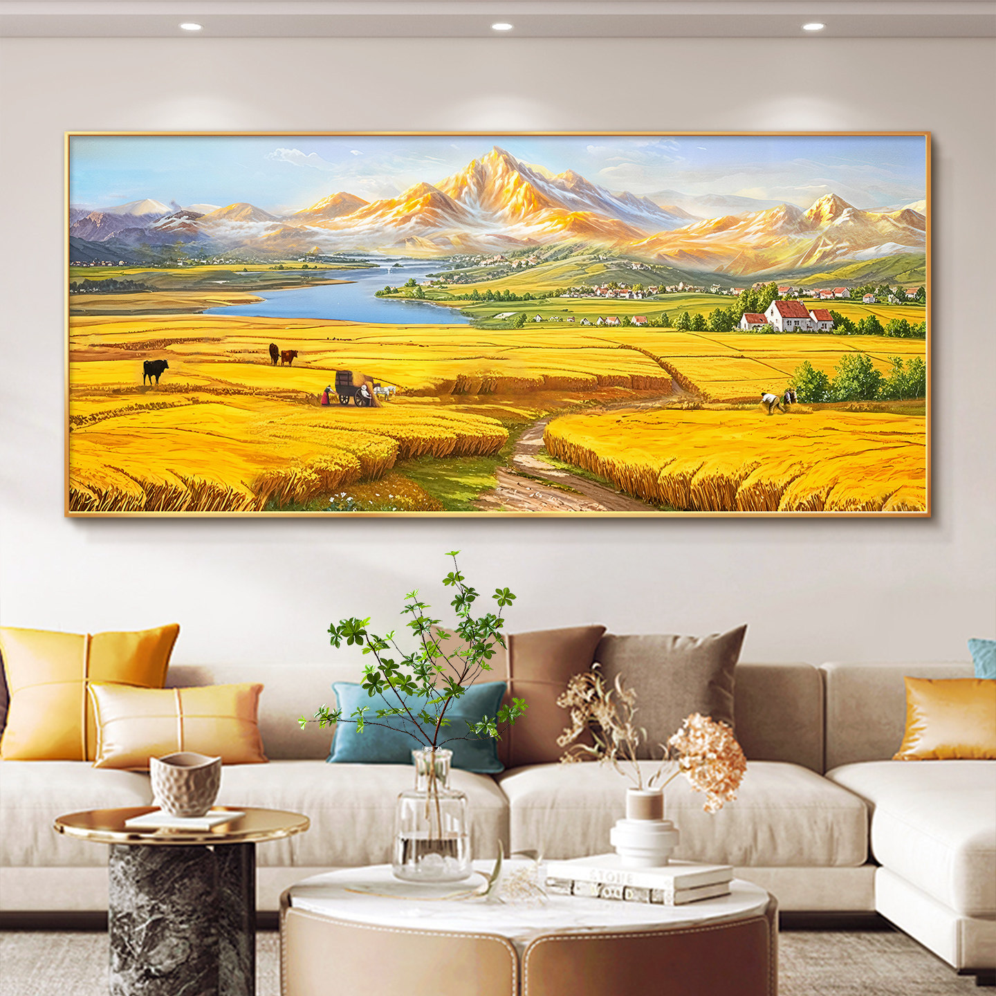 丰收手绘油画客厅沙发背景墙装 饰画高级感挂画聚宝盆山水画壁画