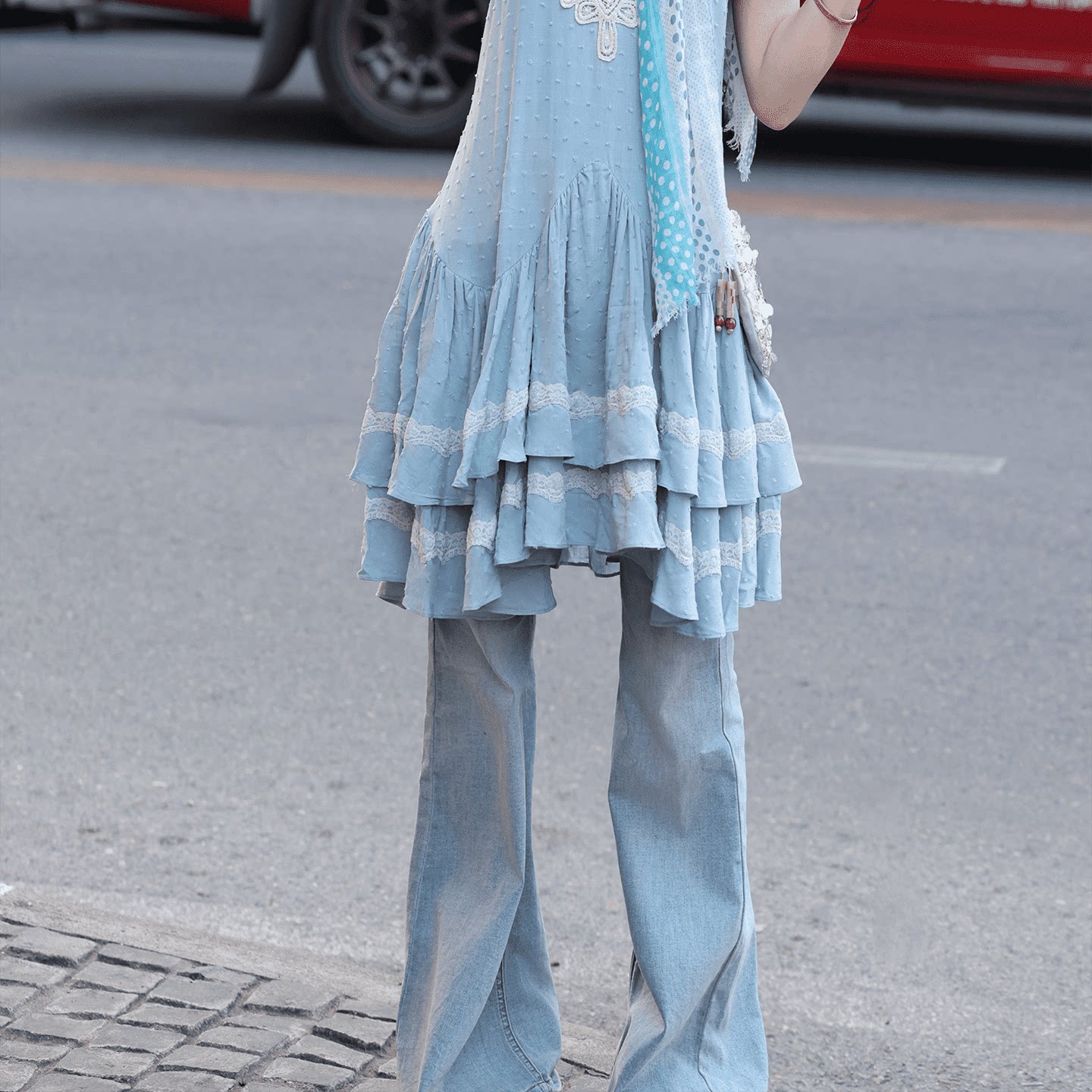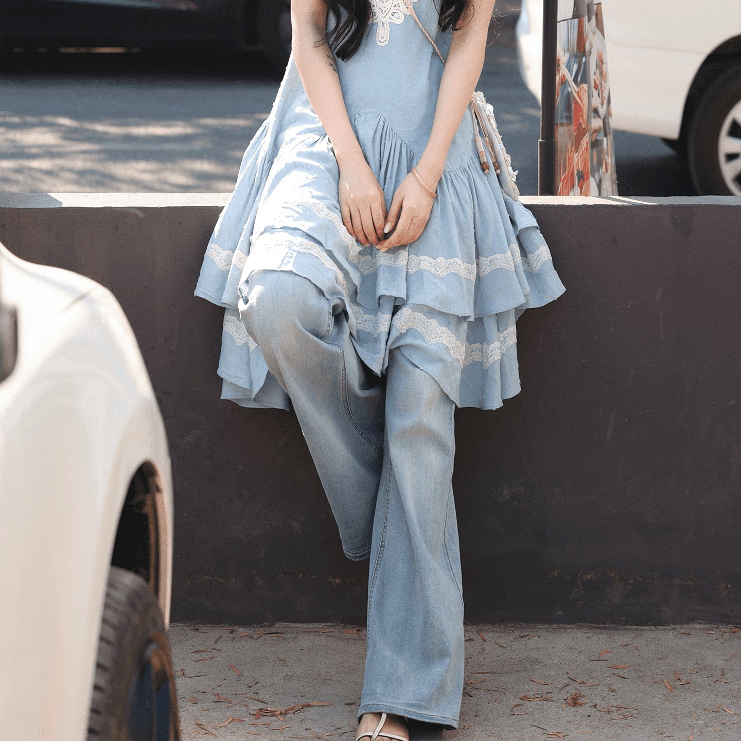 拖地百搭喇叭裤 修身 春夏 显瘦微辣长裤 AZure浅蓝色水洗中腰牛仔裤