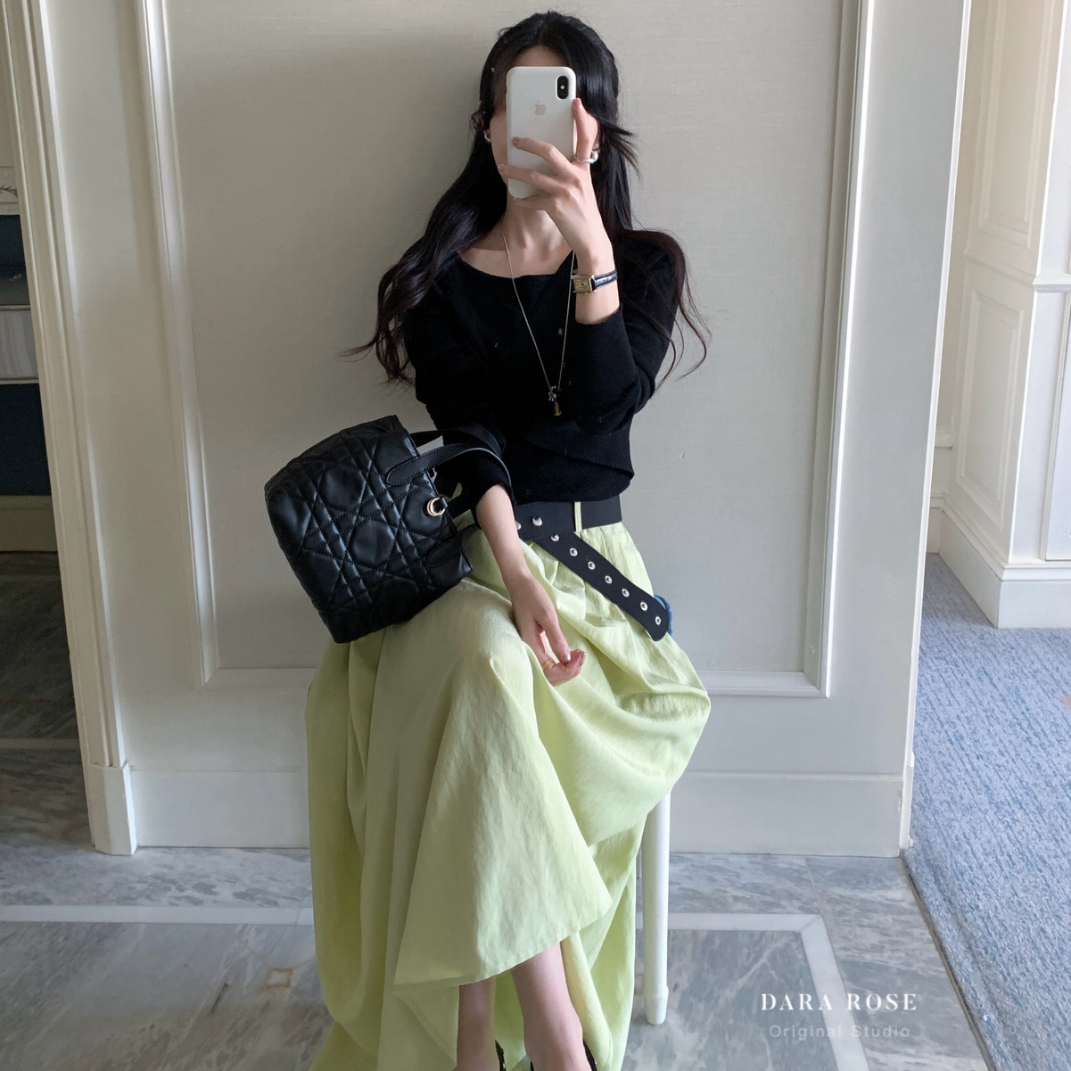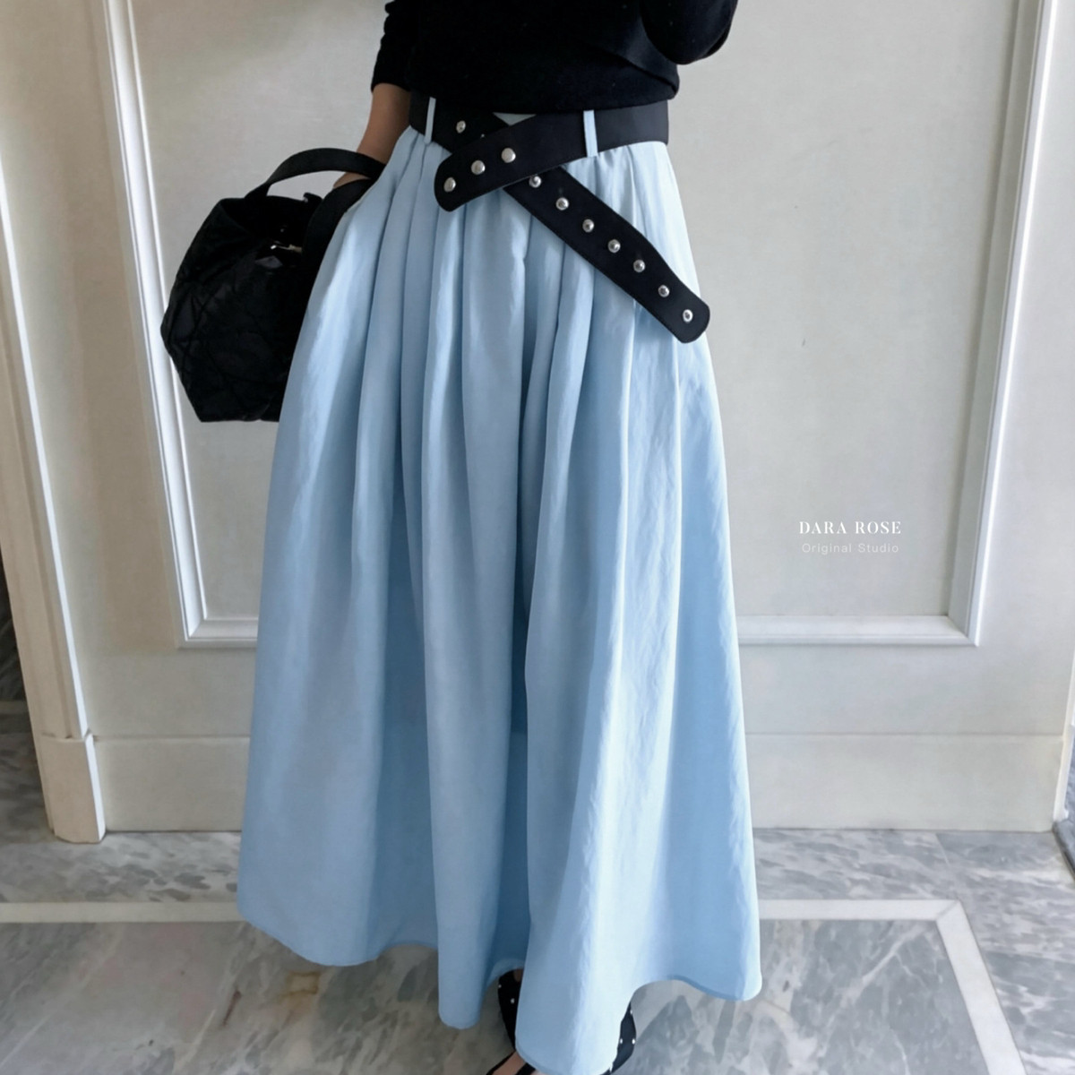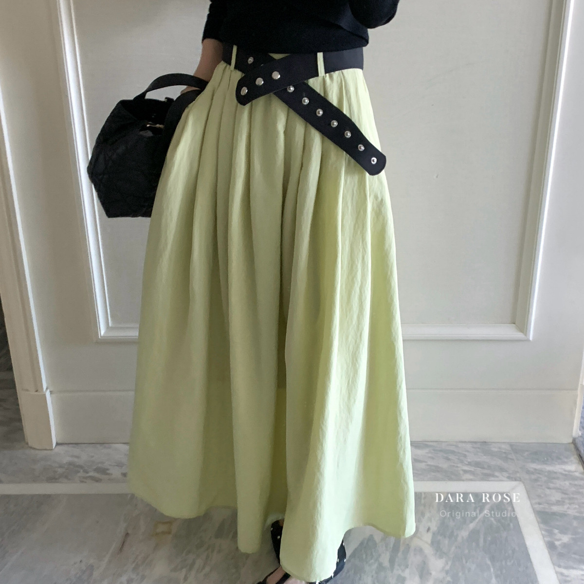 复古宽腰带高腰伞裙a字裙长款 ROSE 大摆裙半身裙 一DARA 26年春款