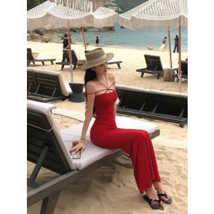 XZY 海岛度假鱼尾长裙 微胖纯欲辣妹性感红色挂脖连衣裙女26年夏季