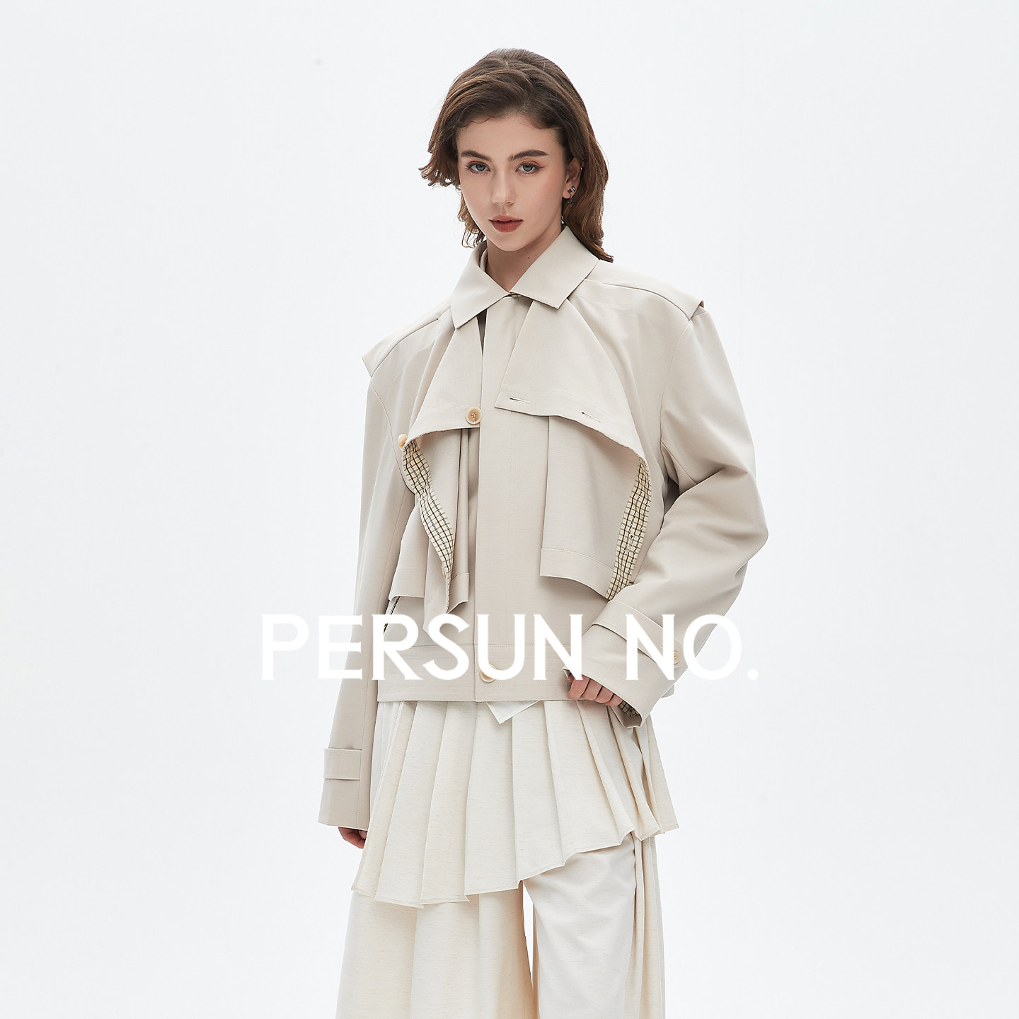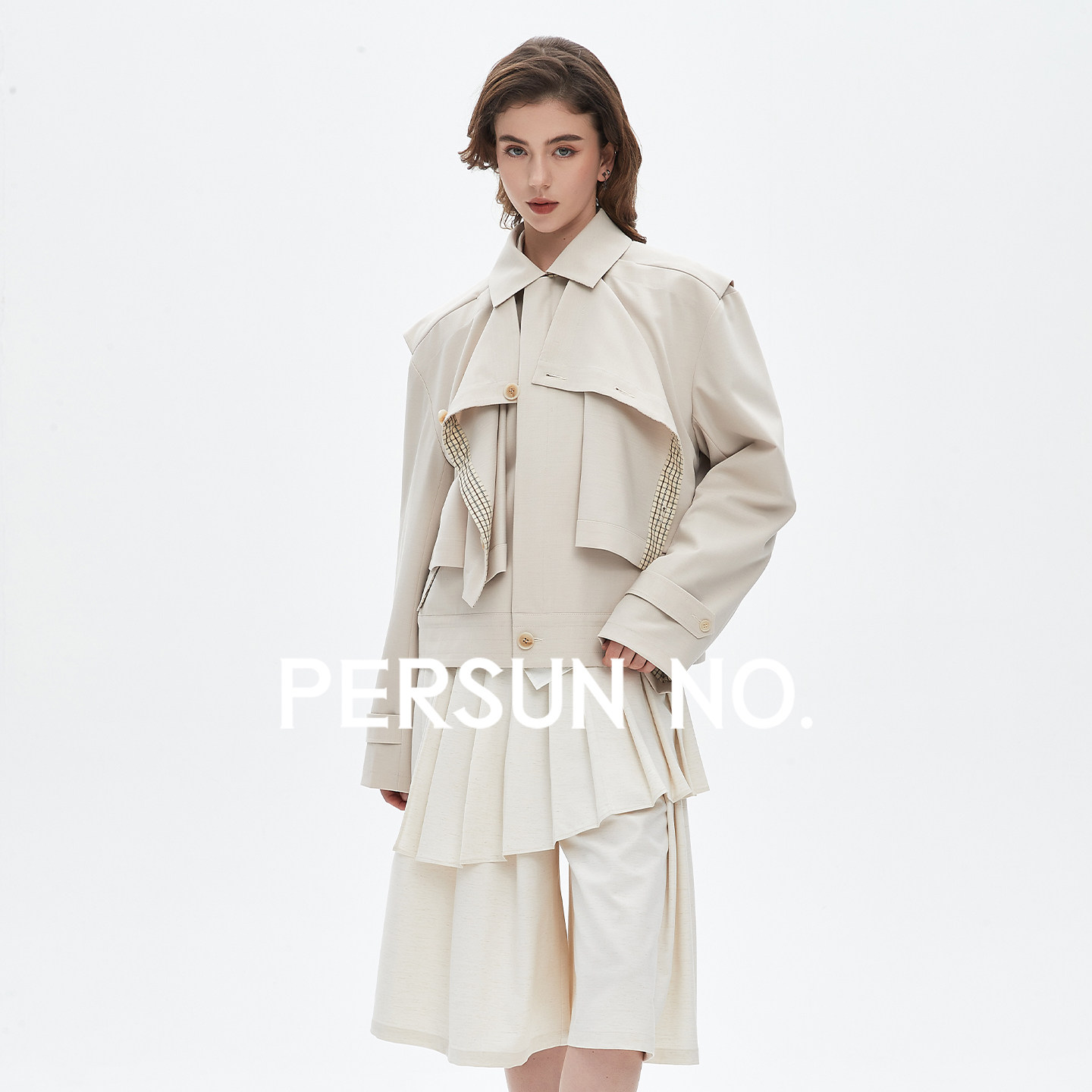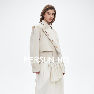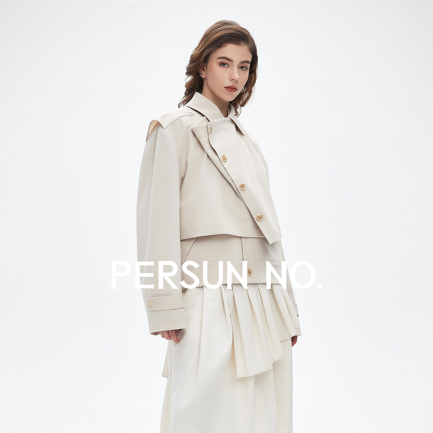 贝母白时髦巴黎不规则短风衣 新款 PERSUN NO.备述春季