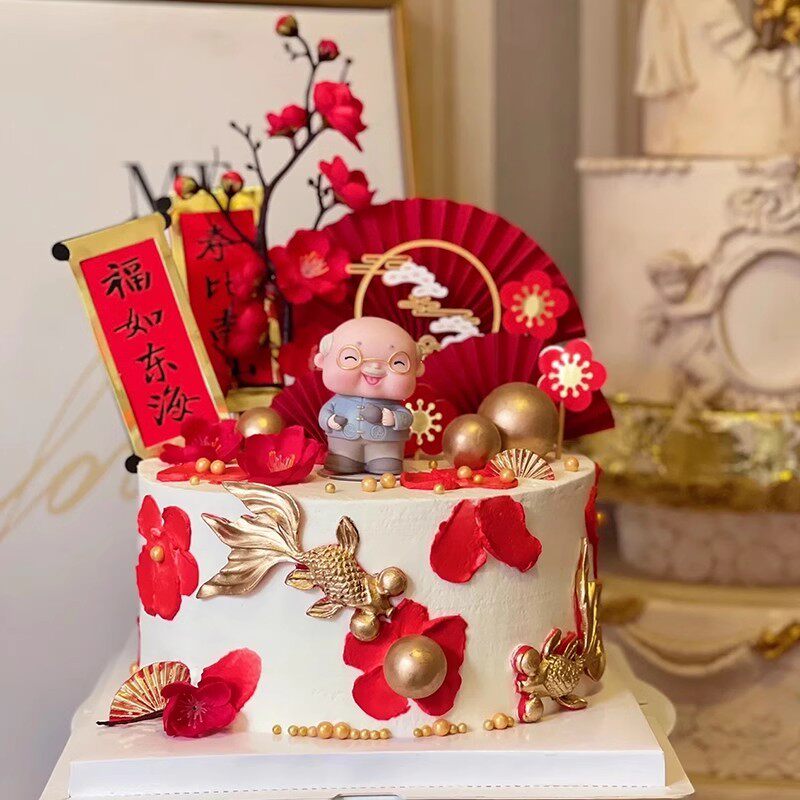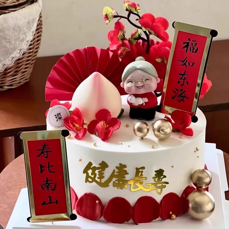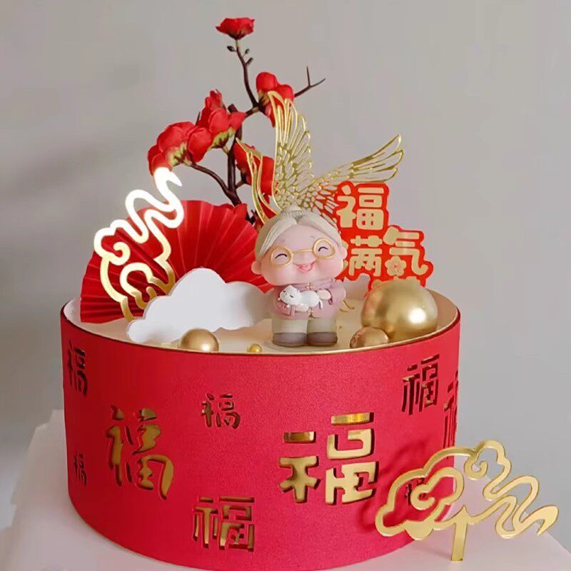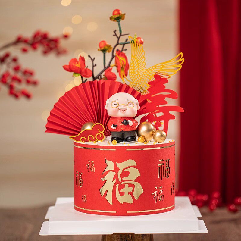 寿星公寿婆蛋糕装 饰摆件老头老太太老爷爷老奶奶老人祝寿生日插件