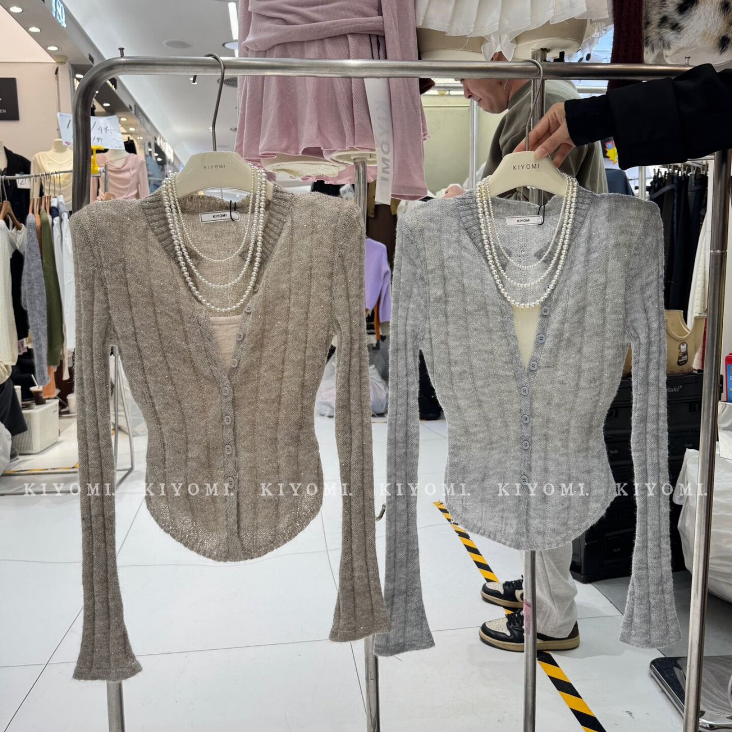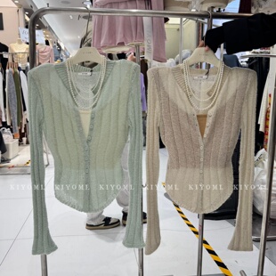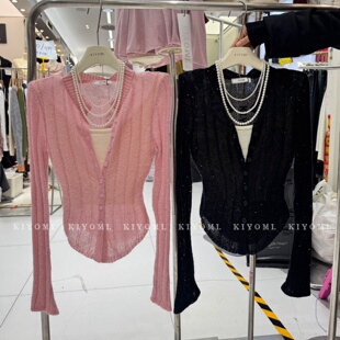短款 十三行KIYOMI2026春新款 针织衫 气质假两件长袖 马海毛上衣 韩版
