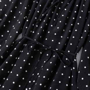 裙长1.2米 开叉连衣裙新 简约黑白点点好面料真丝圆领八分灯笼袖
