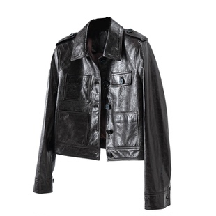 欧洲站高端油蜡小羊皮真皮皮衣女短款 小个子皮夹克外套 2026春新款