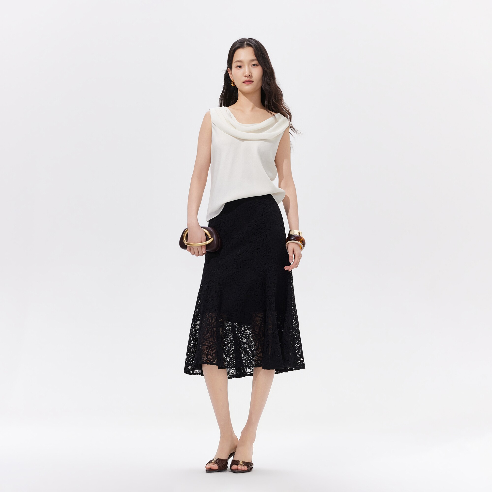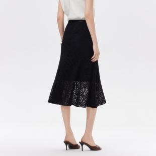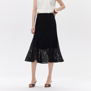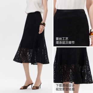 纯色松紧腰带内衬蕾丝鱼尾裙中长裙 新款 Vero Moda半身裙2026夏季