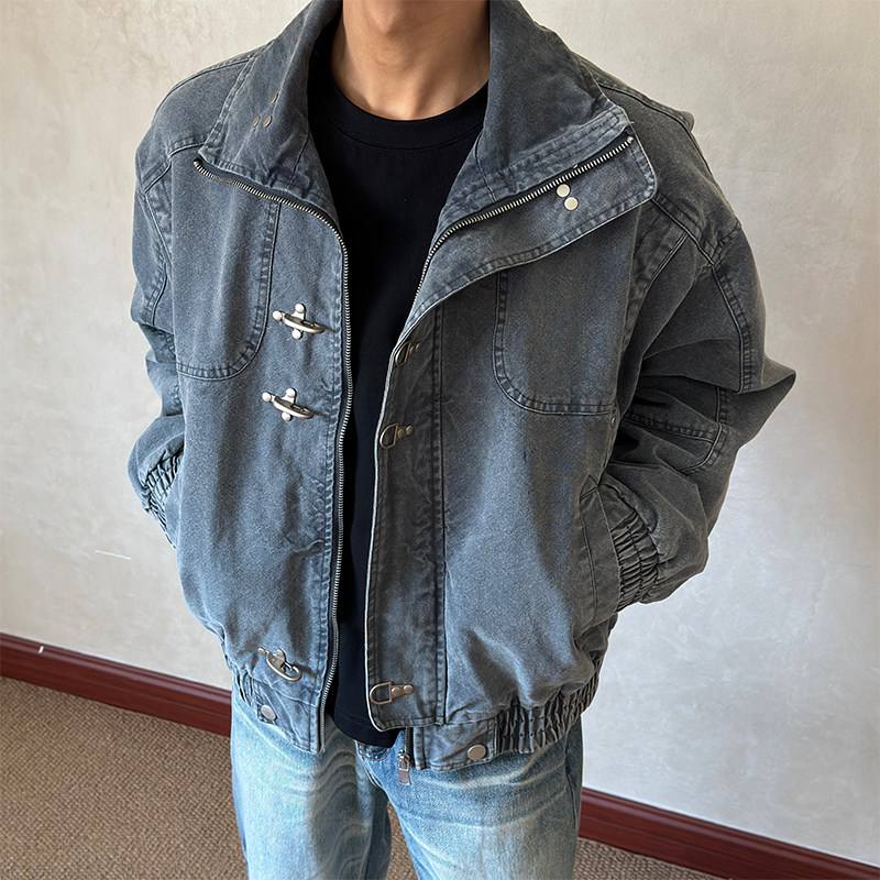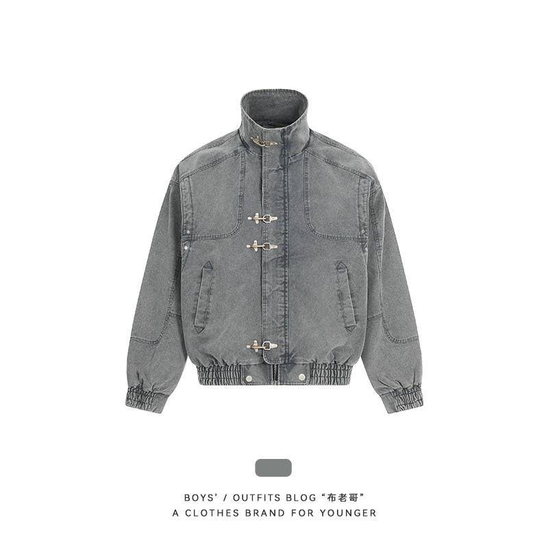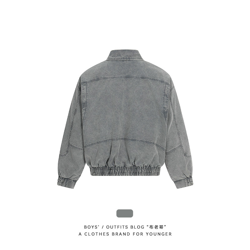 布老哥Blog美式 复古水洗立领牛仔夹克cleanfit短宽显高外套W657