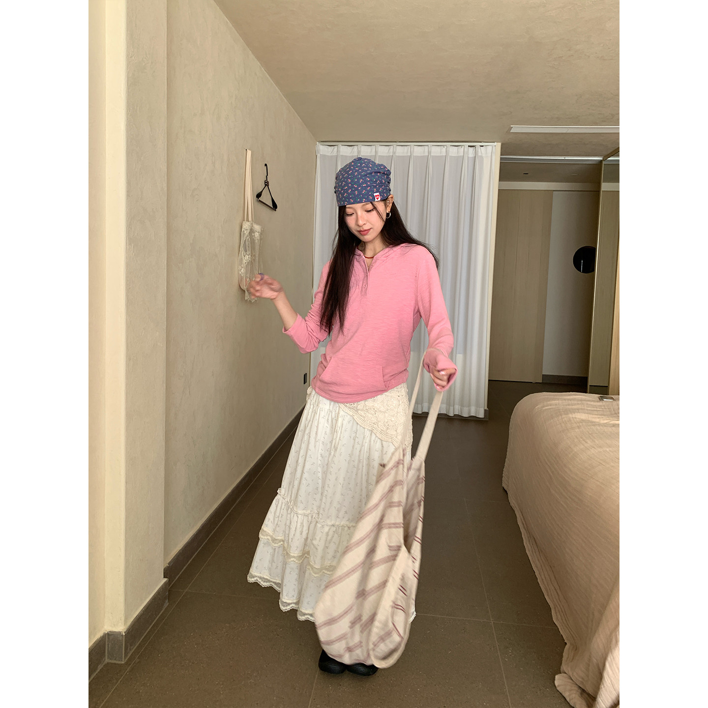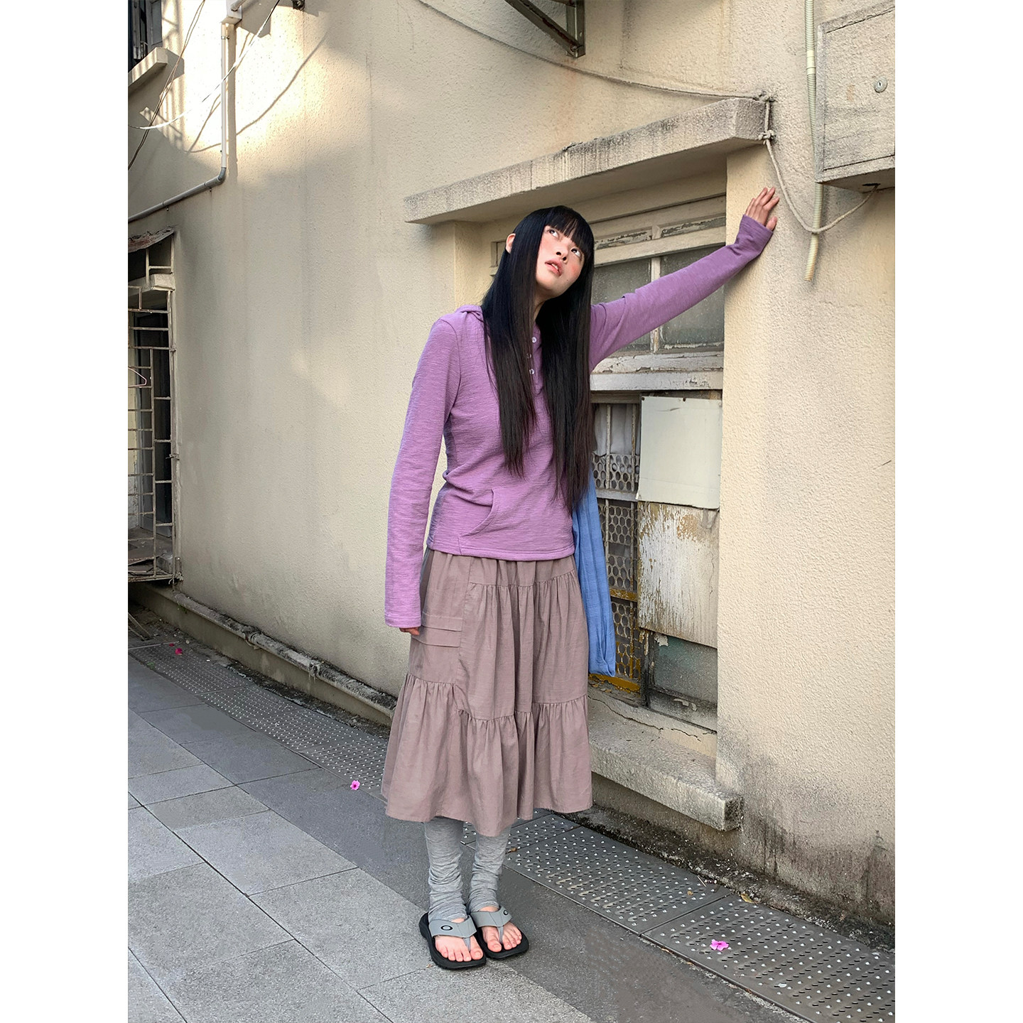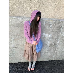 休闲百搭肌理感连帽长袖 早春韩系通勤穿搭 T恤上衣女 现货