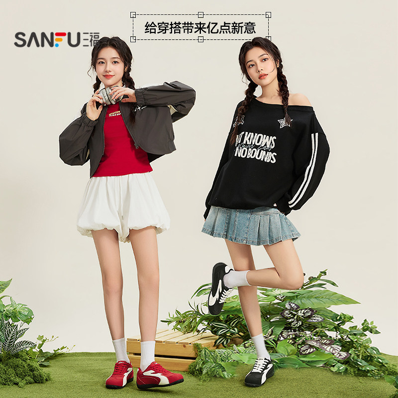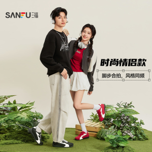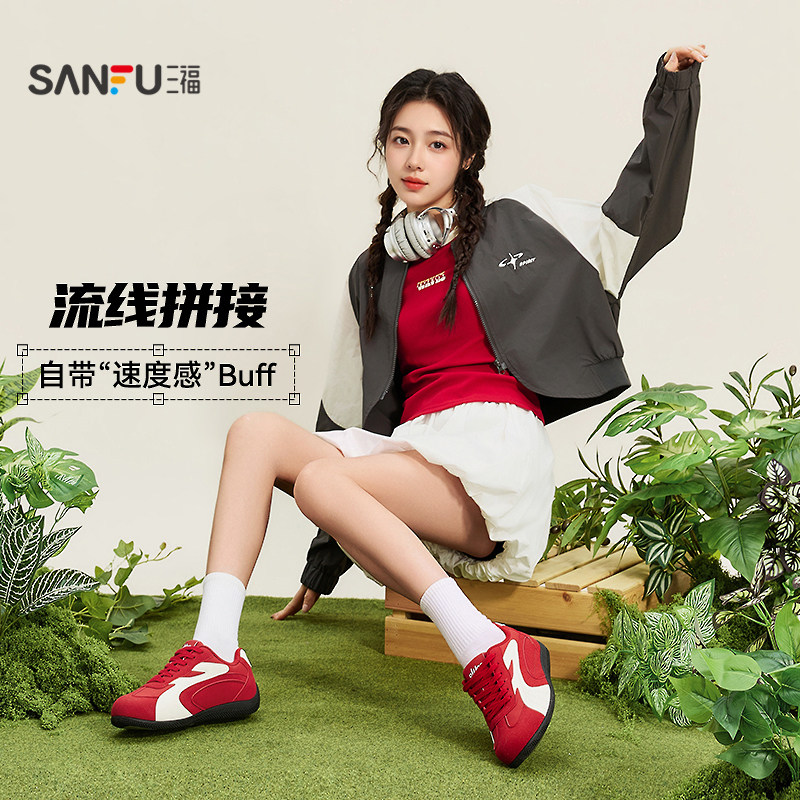 女鞋 三福女板鞋 轻便低帮德训鞋 复古系带平底赛车鞋 853655 春季