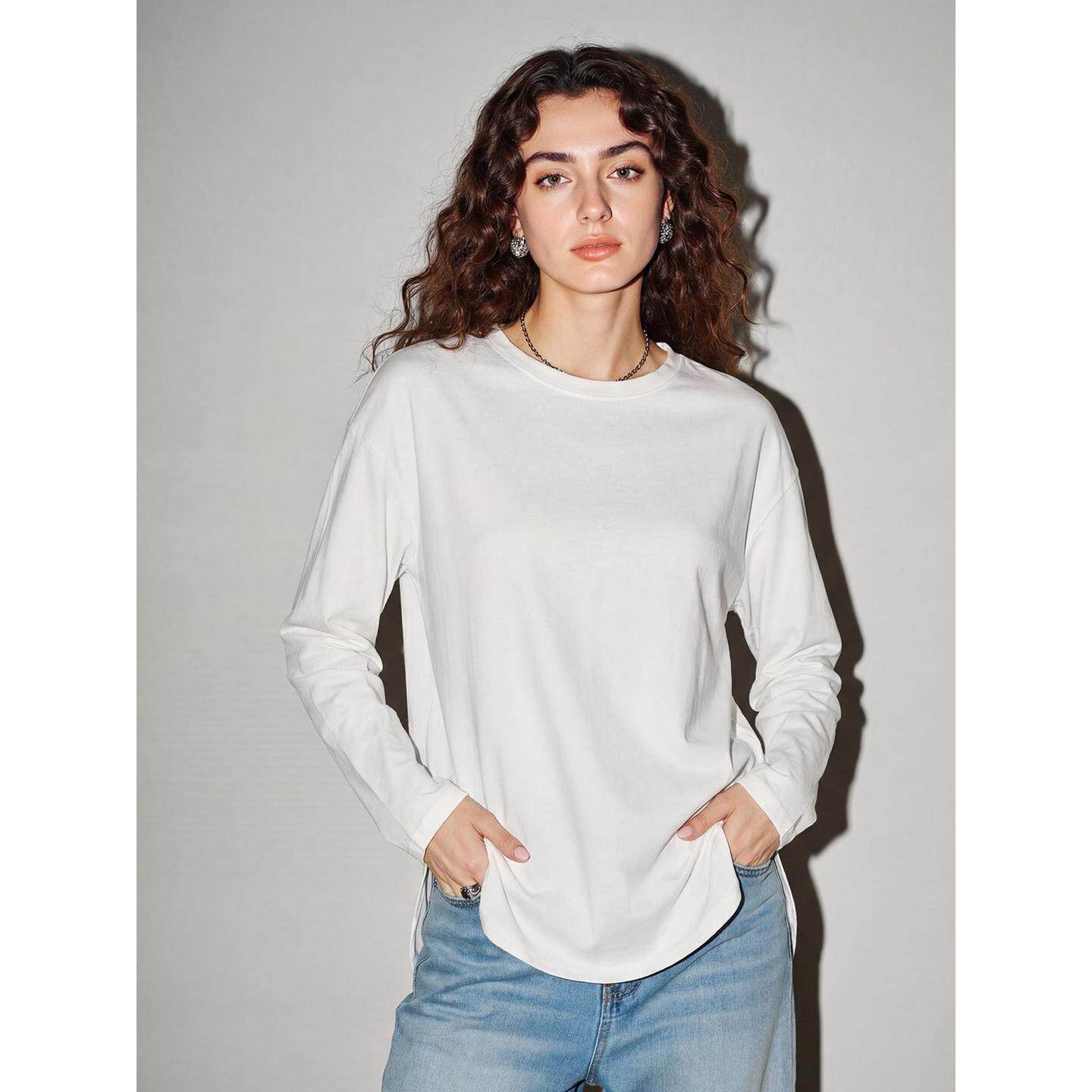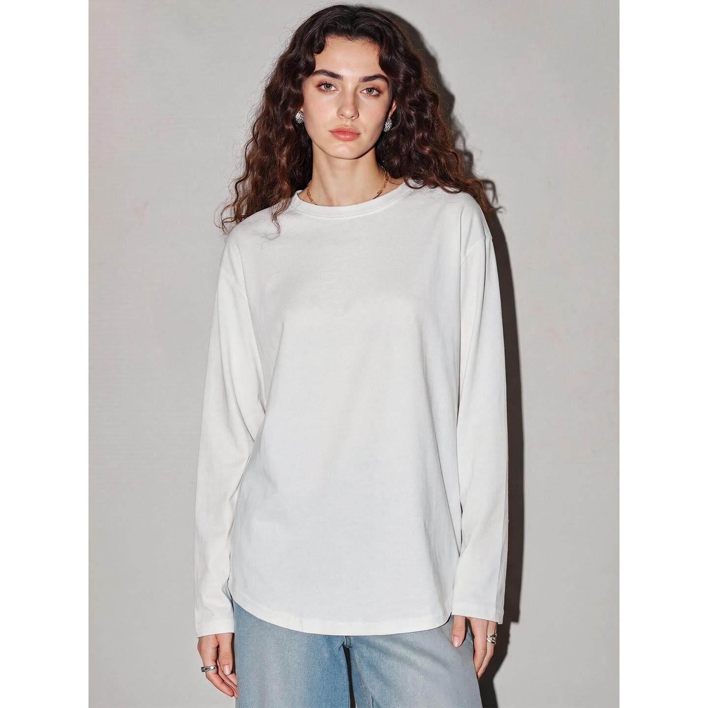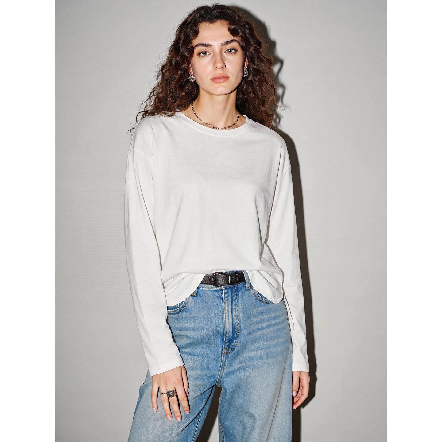 新款 Basic T恤女2026春季 百家好简约白色长袖 宽松圆领上衣 House