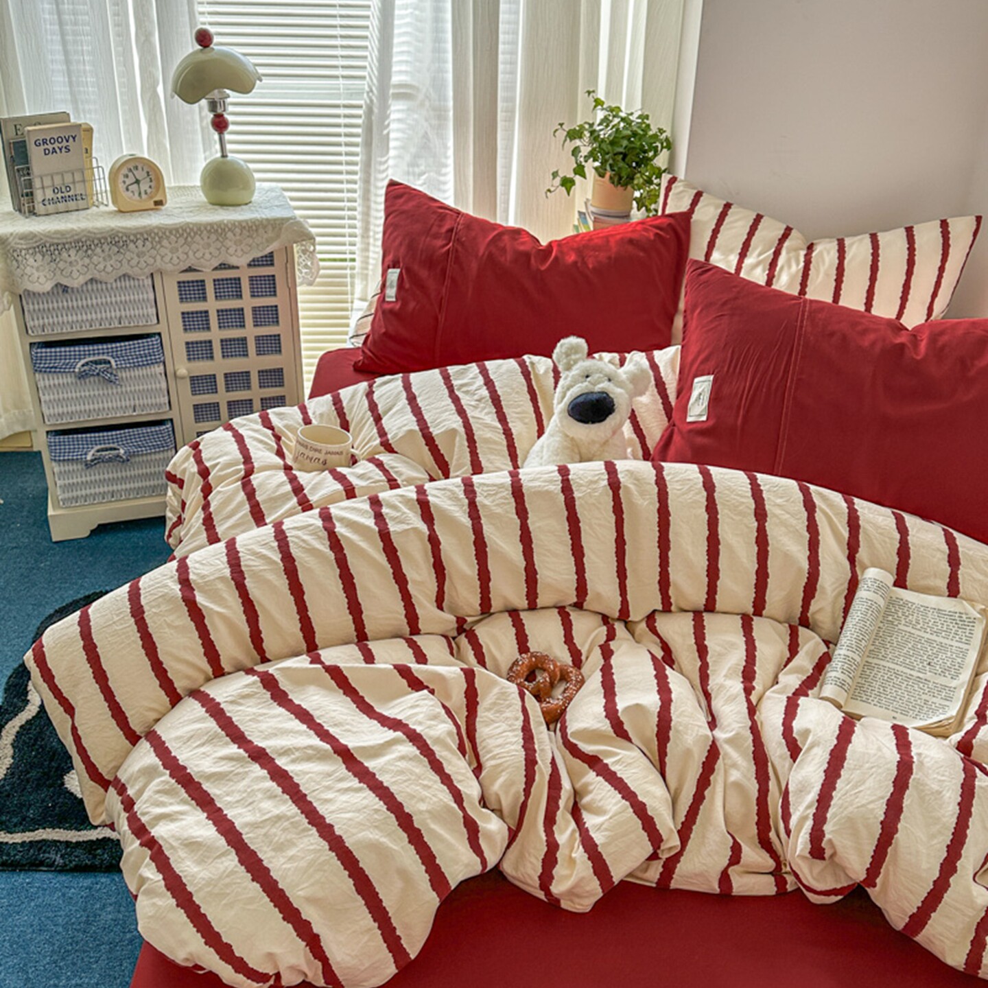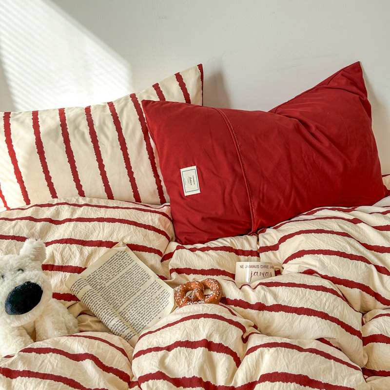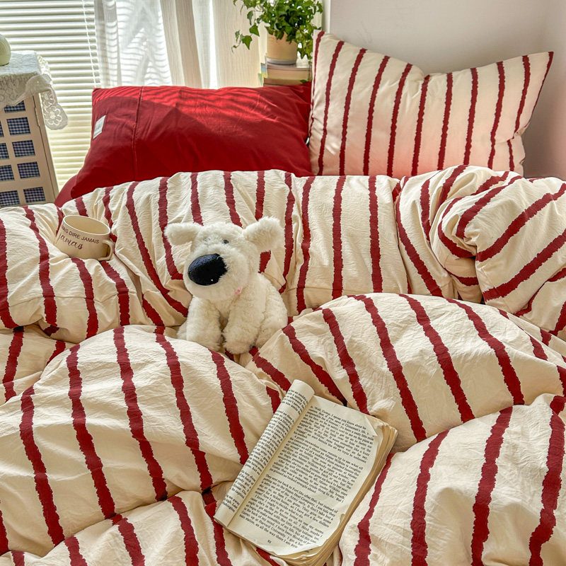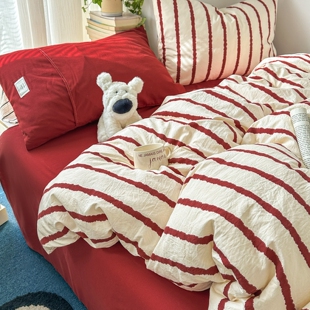 美式 非全棉纯棉被套宿舍床单三件套 摩卡条纹水洗棉四件套2026新款