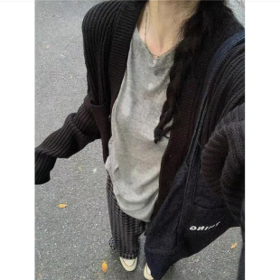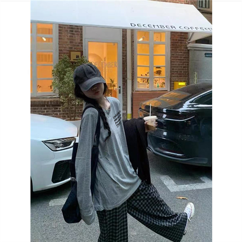 小众慵懒打底衫 纯棉美式 春秋薄款 t恤女2026新款 字母潮牌正肩长袖