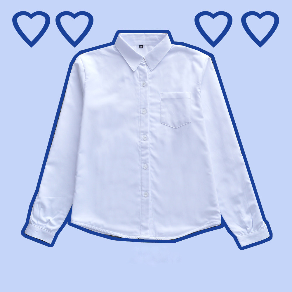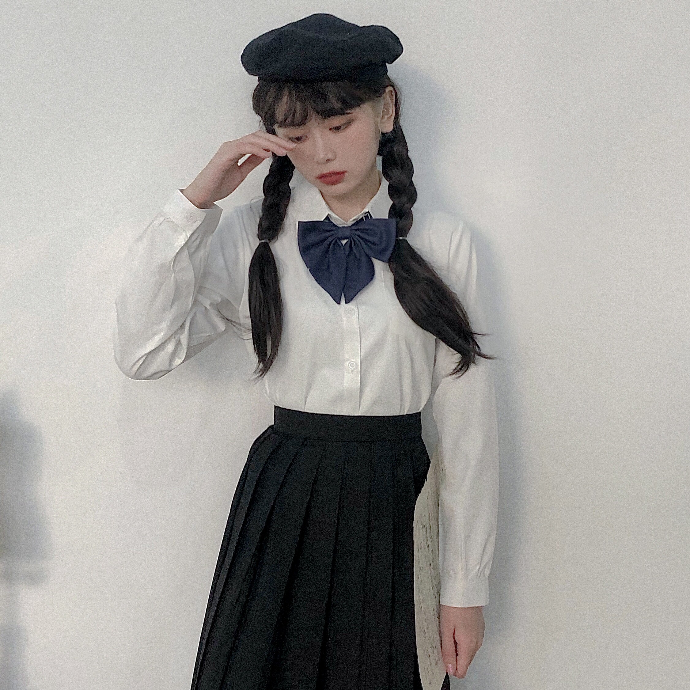上衣 角襟衬衣丸襟制服基础款 学院风宽松衬衫 女春秋日系白色长袖