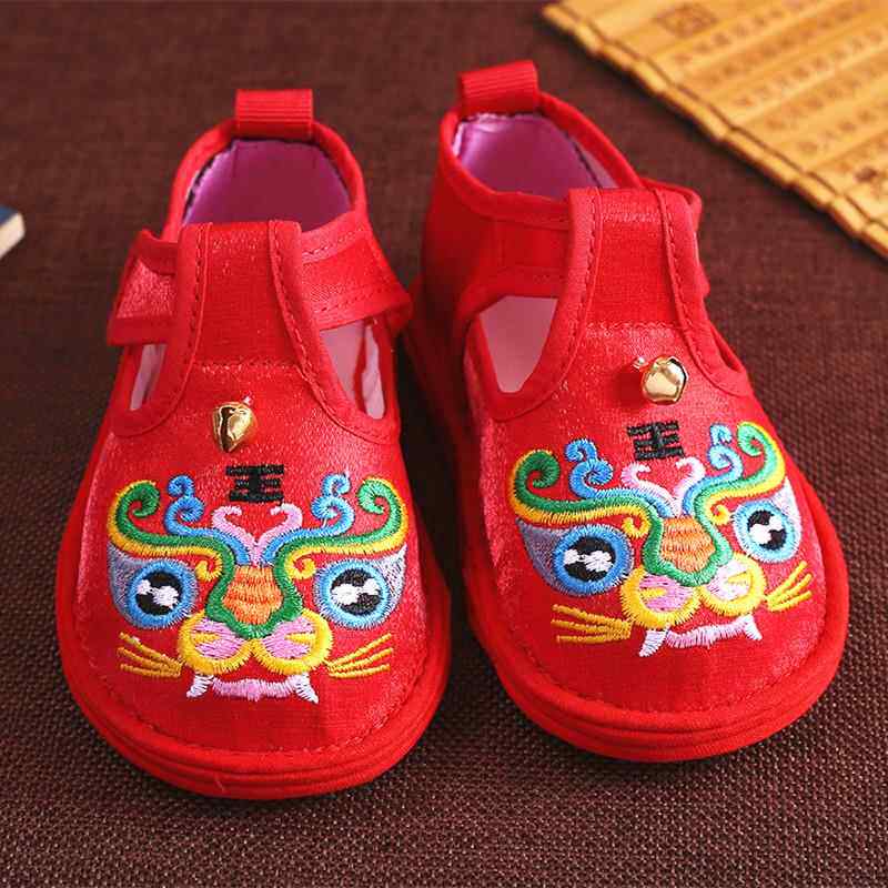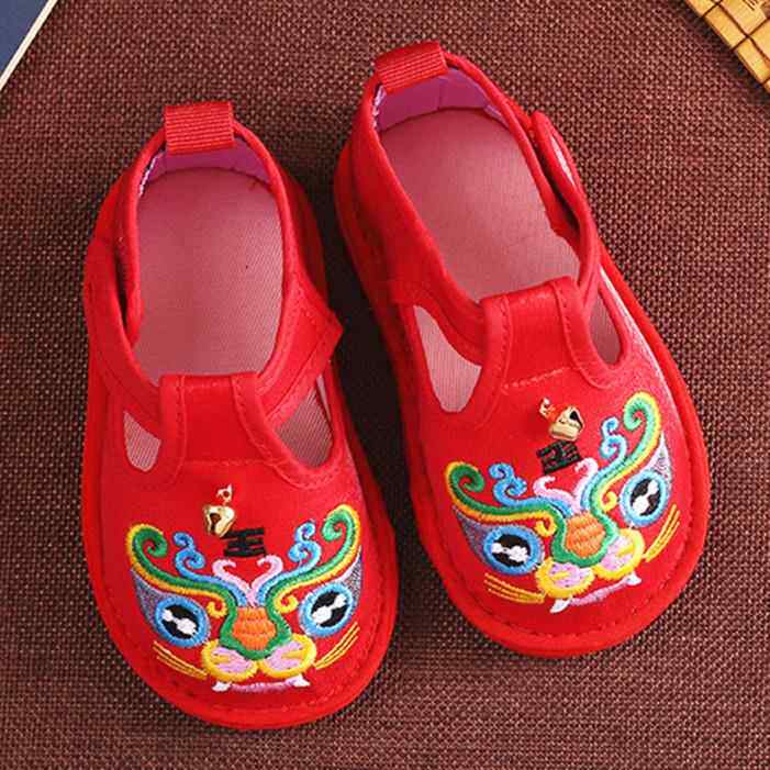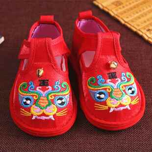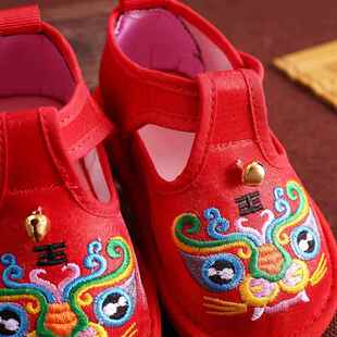 刺绣千层底红色铃铛帆布鞋 防滑透气单鞋 婴儿虎头鞋 宝宝护脚学步鞋