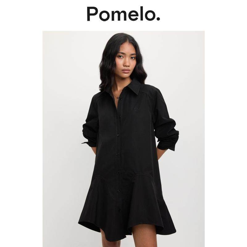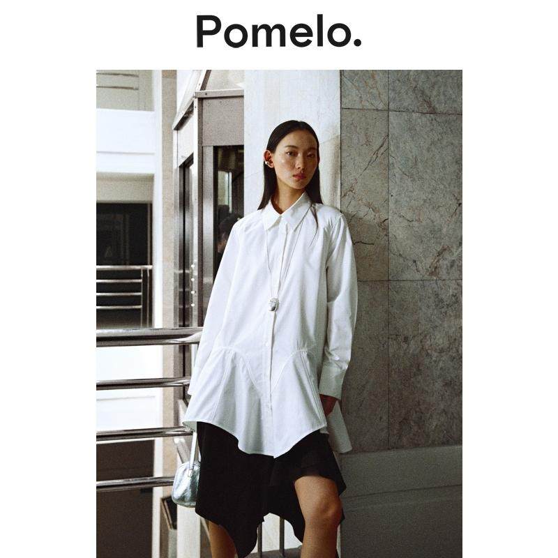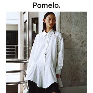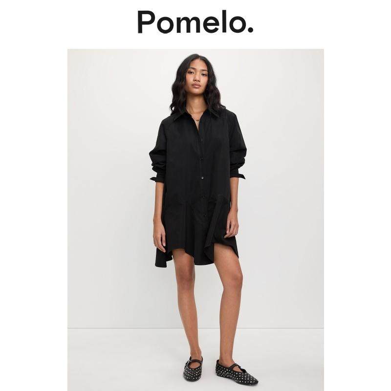 衬衫 Pomelo 设计感小众宽松中长款 裙新款 连衣裙女 不规则下摆衬衫