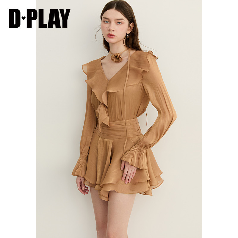 气质长袖 DPLAY法式 新款 千金风雪纺衬衣女2026春季 上衣 荷叶边衬衫