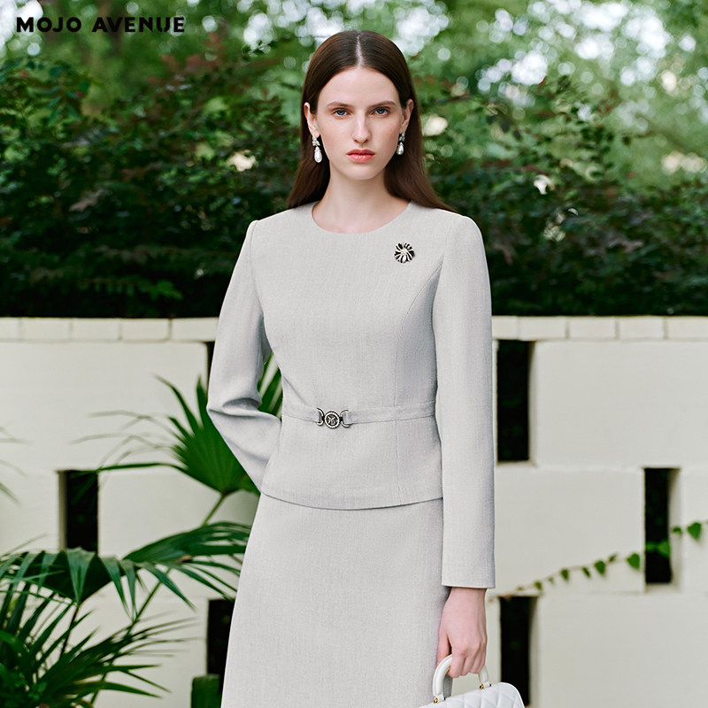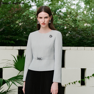智感女士职场极简短外套圆领收腰上衣 新品 朗姿 MOJO莫佐2026春季