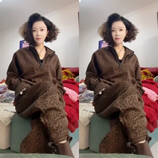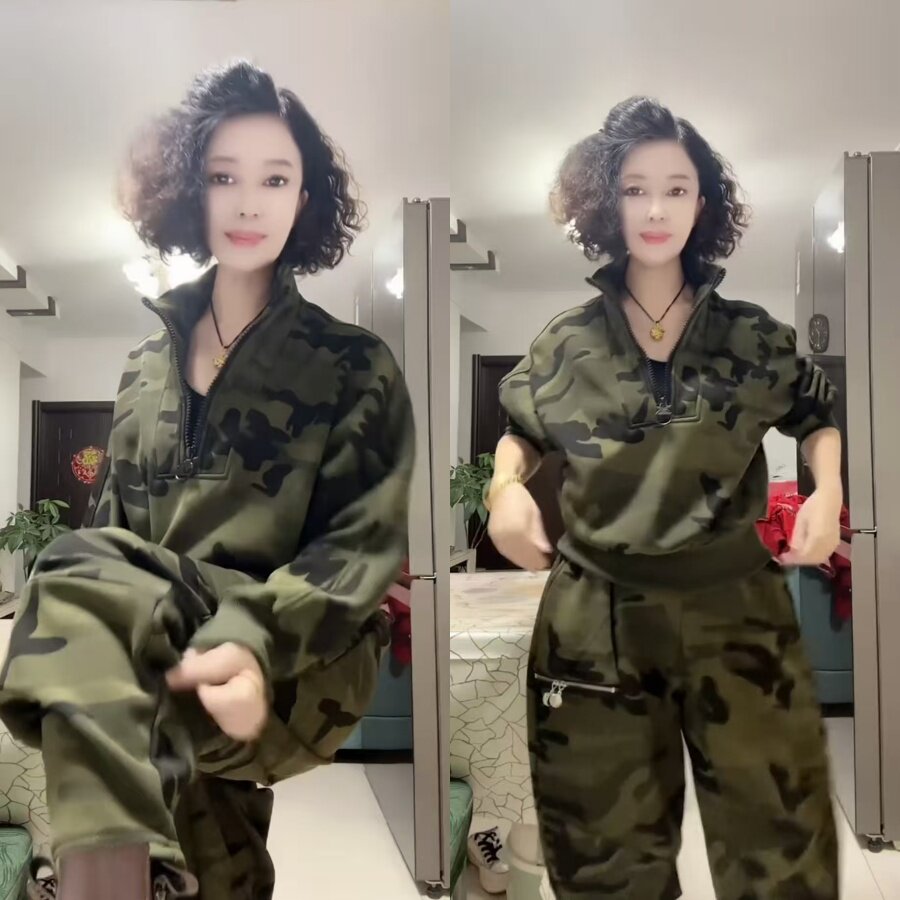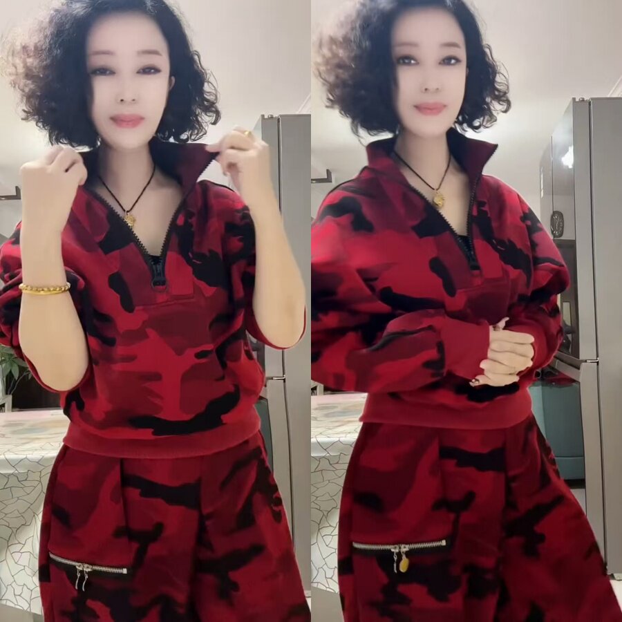 显瘦遮肉酷帅两件套 半拉链卫衣哈伦裤 气质休闲迷彩加绒套装 新年款