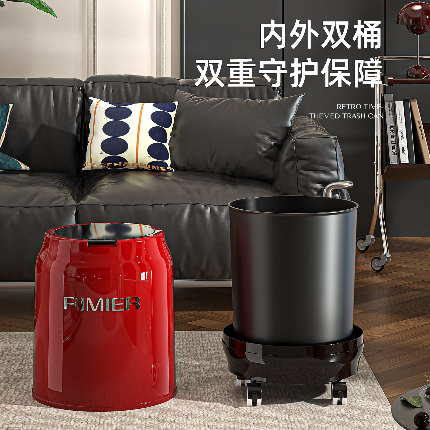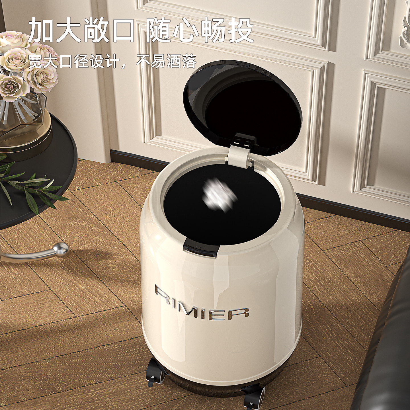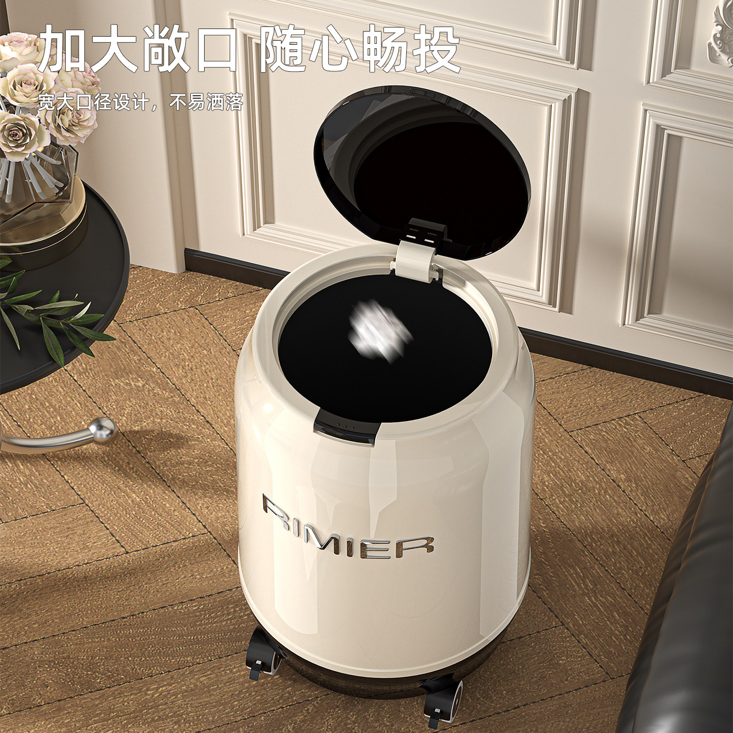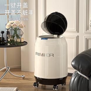 垃圾桶家用2026新款 客厅卧室高颜值大容量按压带盖带轮可移动纸篓