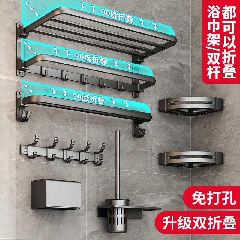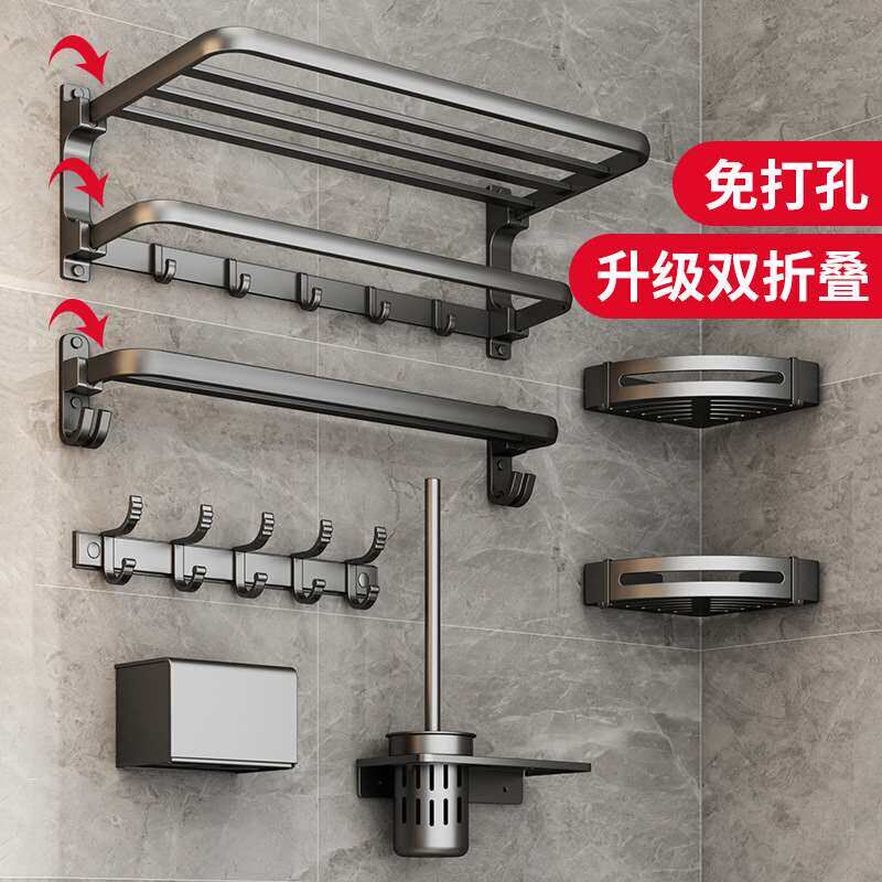 Non perforated Towel Gun Space Bathroom Rack Gray