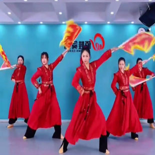 马踏山河舞蹈演出服红色古装 国风飘逸苍穹唤相思遥打鼓服万马奔腾