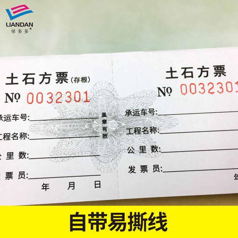 土石方票土方票砂石票渣土票运输票定制运土票订做挖机易撕线单据