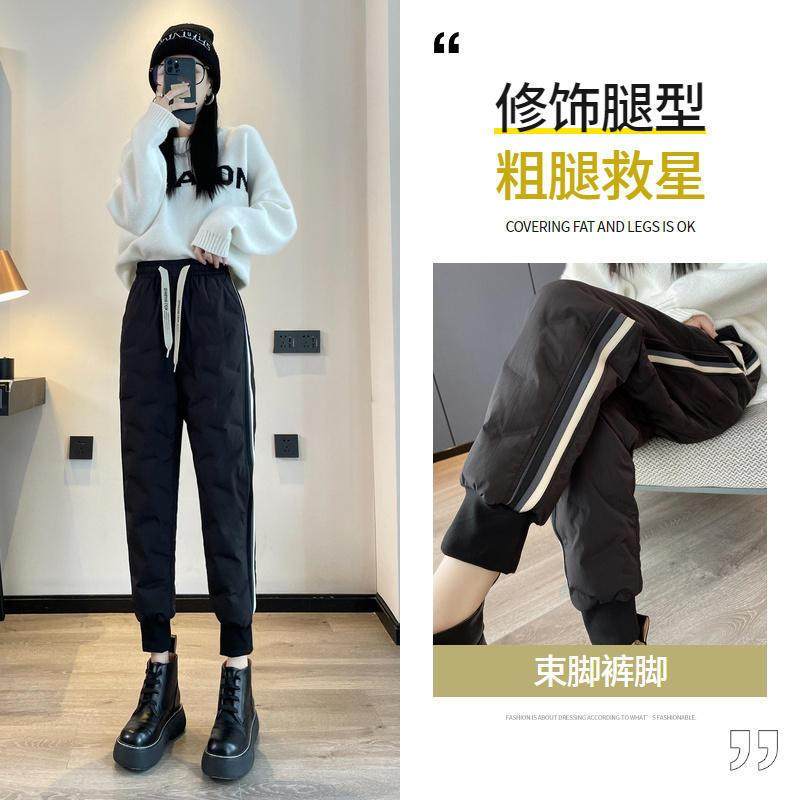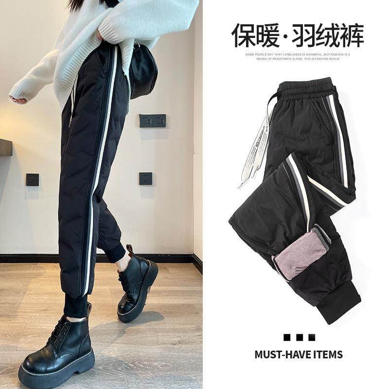 女外穿冬季 马丁靴裤 2025新款 加绒棉裤 子 加厚哈伦白鸭绒时尚 羽绒裤