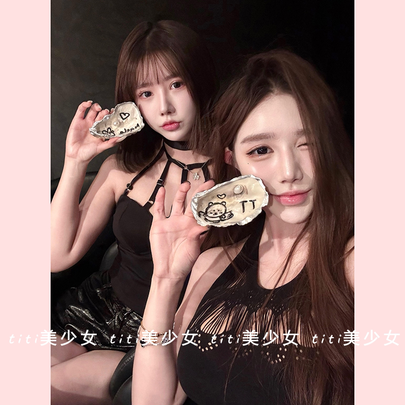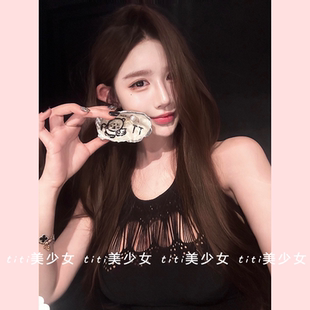连衣裙短裙 纯欲御姐微透性感镂空紧身挂脖修身 TiTi美少女