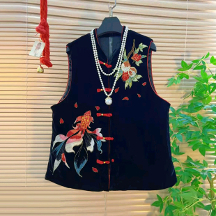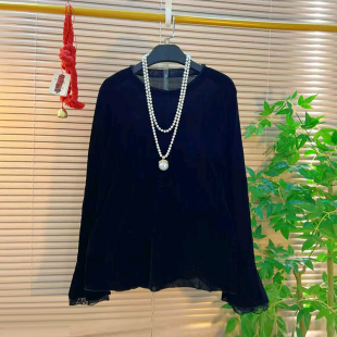 小衫 盘扣刺绣图案国风马甲胖妹妹黑色显瘦百搭减龄长袖 女装 加大码