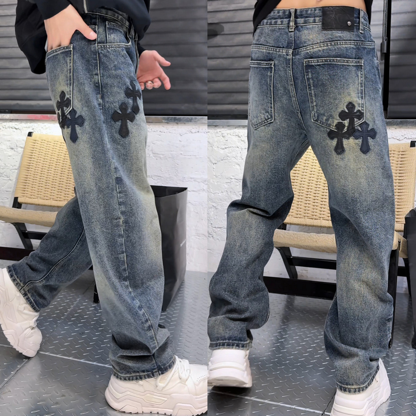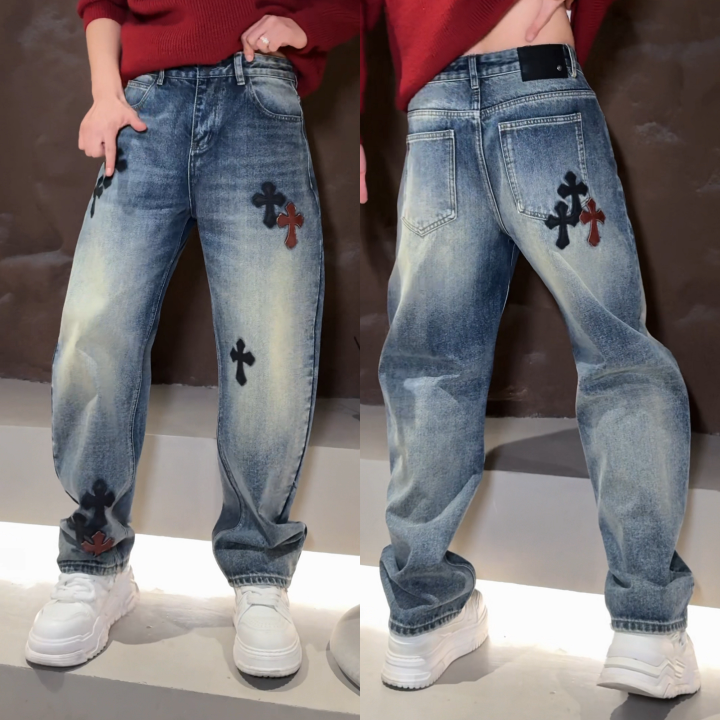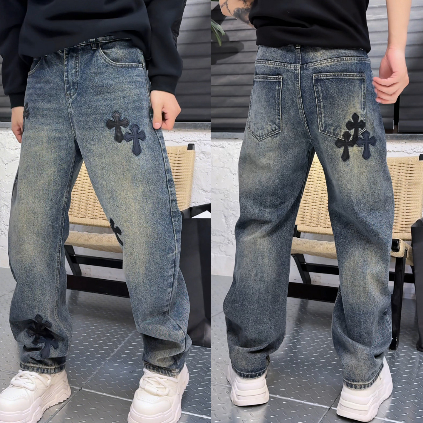 休闲牛仔裤 冬季 十字花贴花设计宽松百搭男士 潮牌酷帅时尚 上新美式