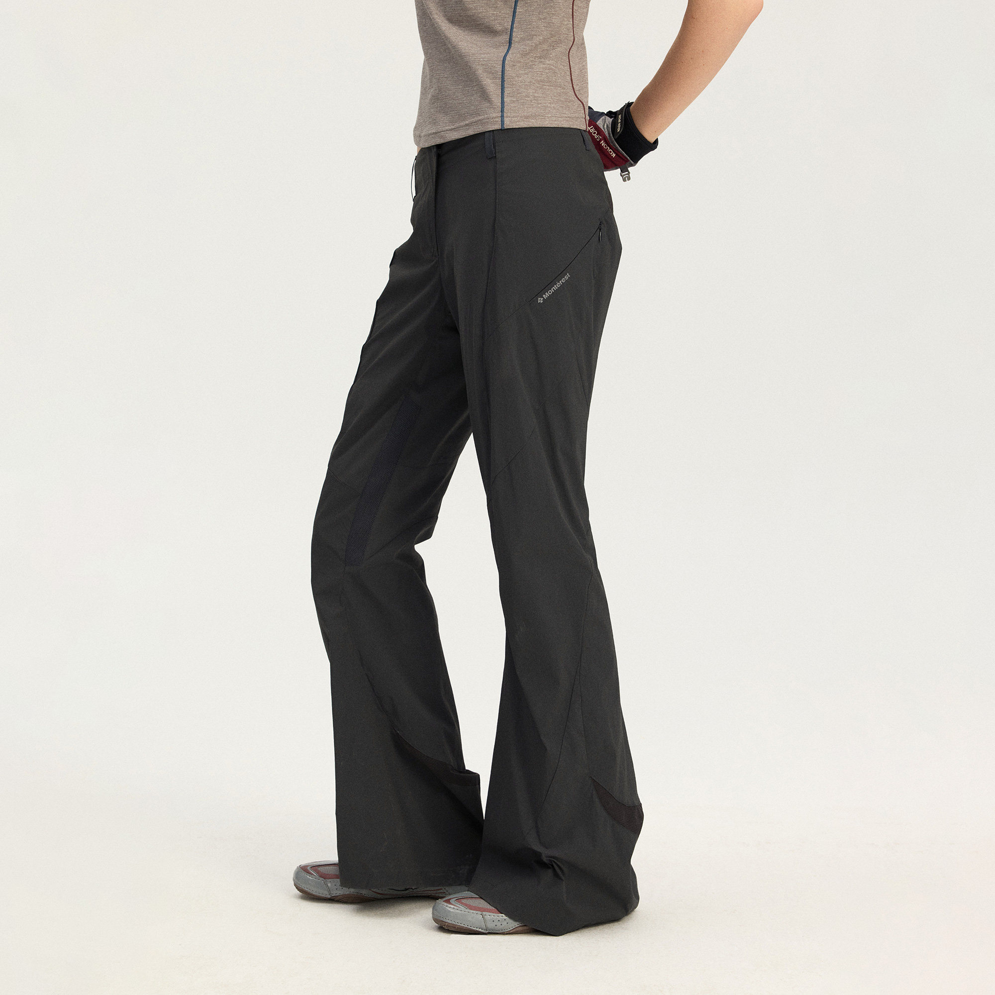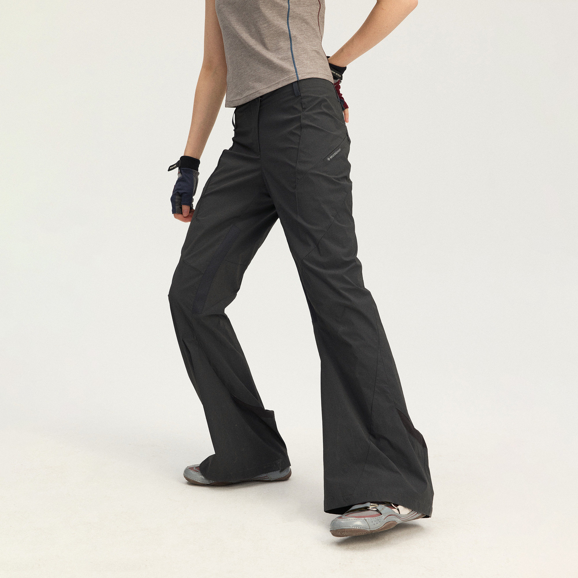 瞬时山野Monterest户外防泼水微皱肌理机能风喇叭廓形休闲长裤 女