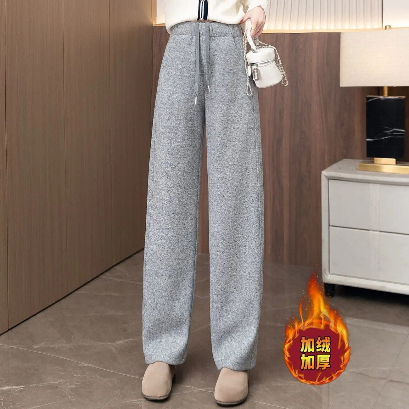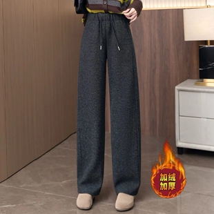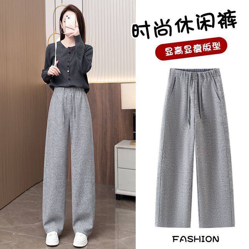 弯刀松紧高腰宽松休闲直筒裤 女爆款 秋冬加绒加厚阔腿裤 清仓捡漏