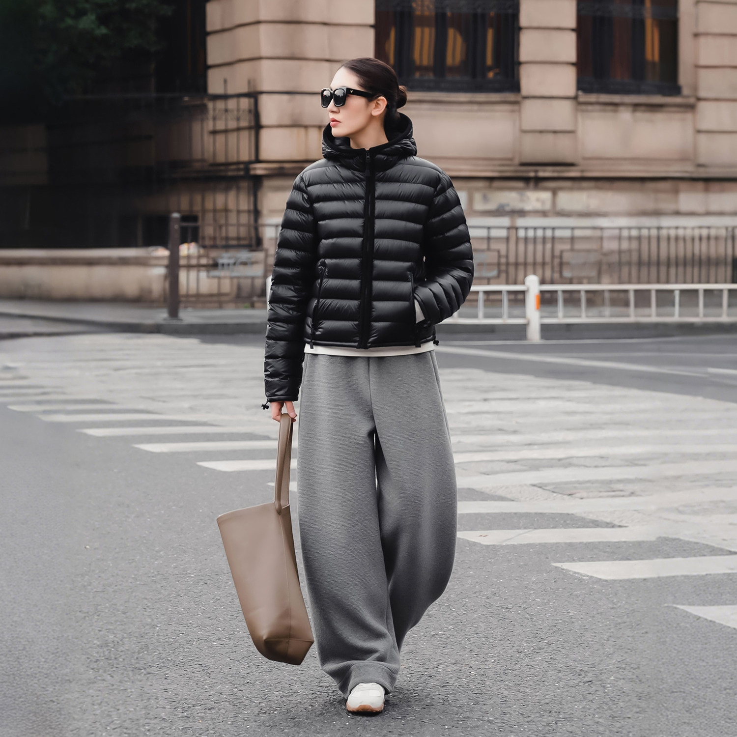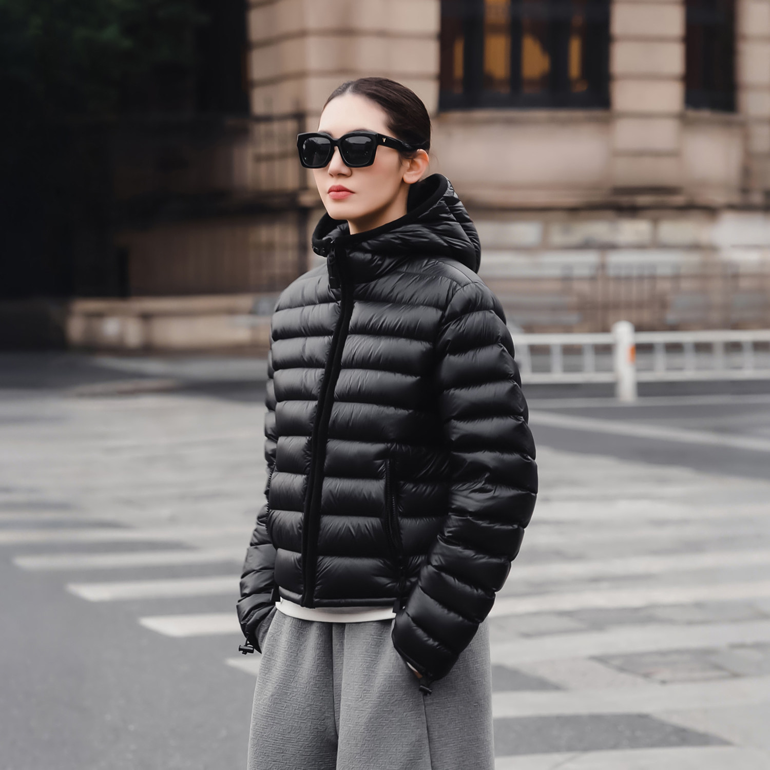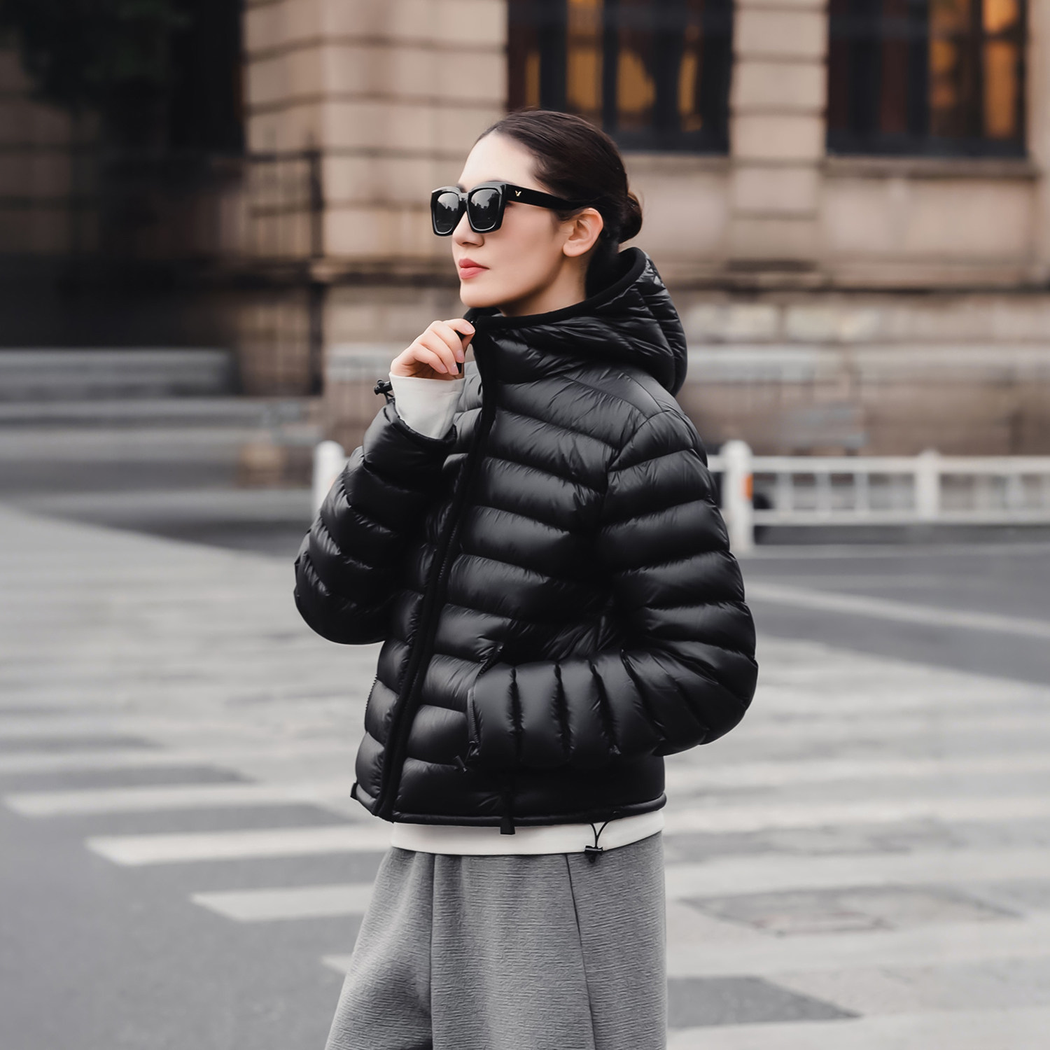连帽黑色百搭休闲排骨羽绒服女冬 三星安心鹅绒短款 知喜ziJoy