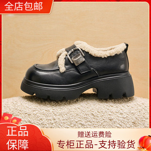 E1Z1 国内专柜正品 牛皮厚底复古女单鞋 百丽JK乐福鞋 E1Z1D 2025秋款