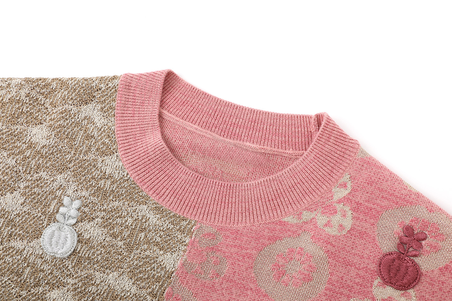 女装 时尚 复古撞色拼接圆领套头针织女宽松上衣女 设计师款 2026春季