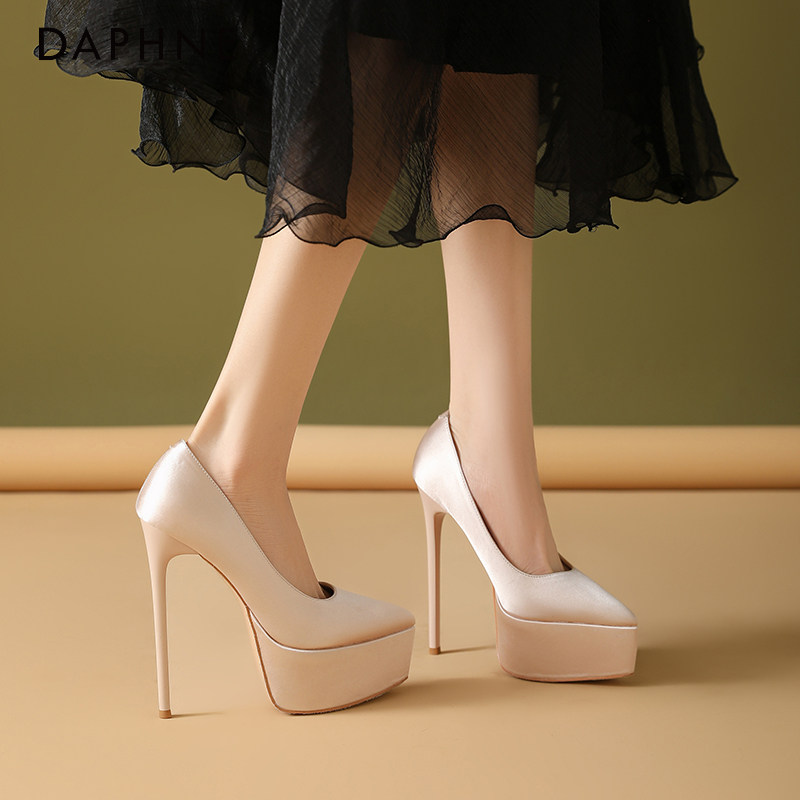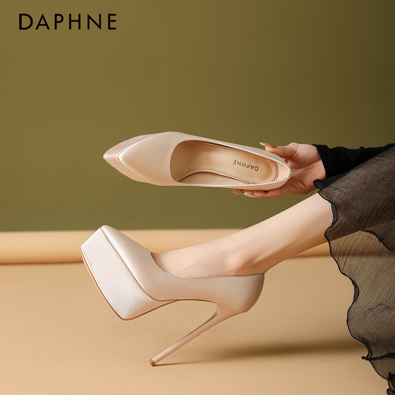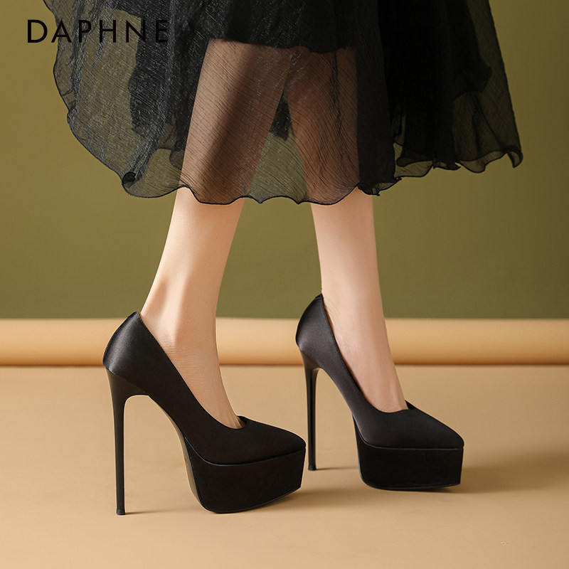 细跟尖头单鞋 2026年新款 女 达芙妮小个子防水台黑色高跟鞋 Daphne