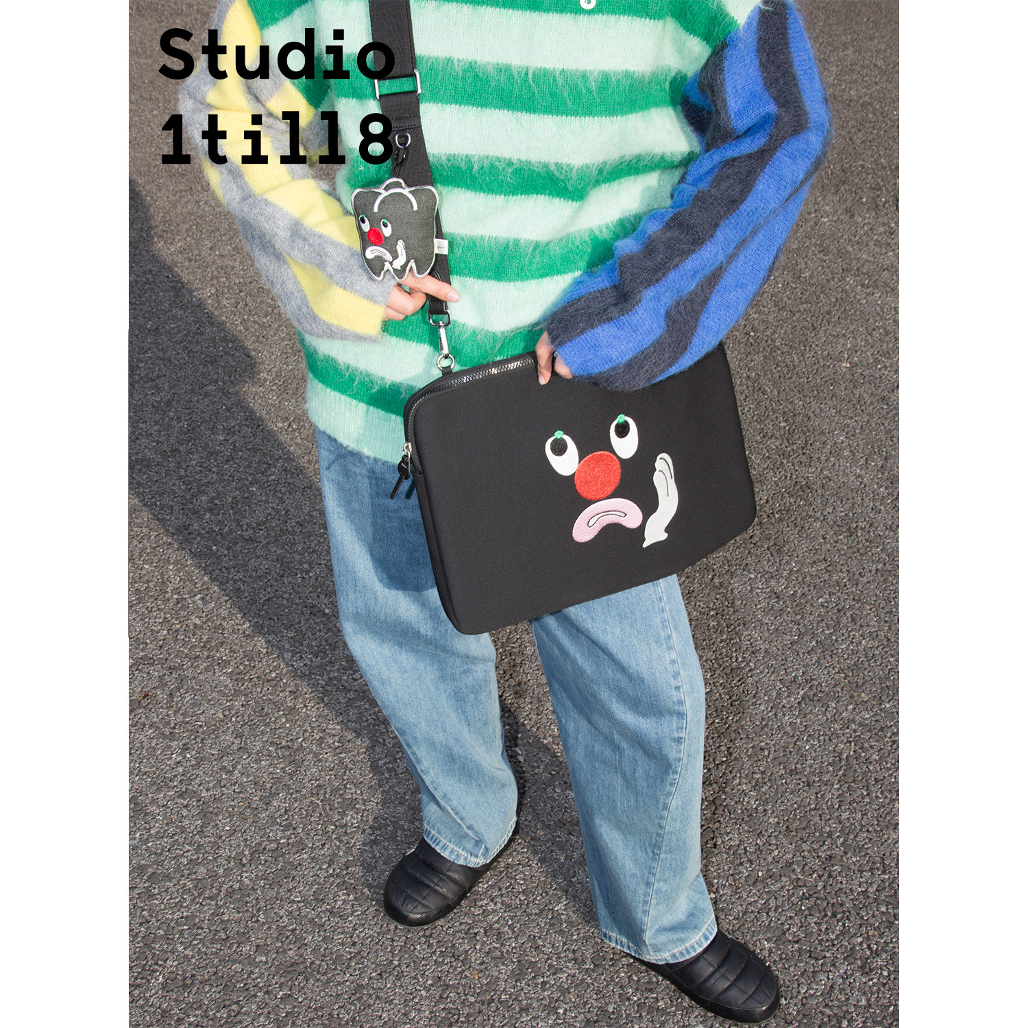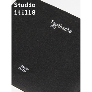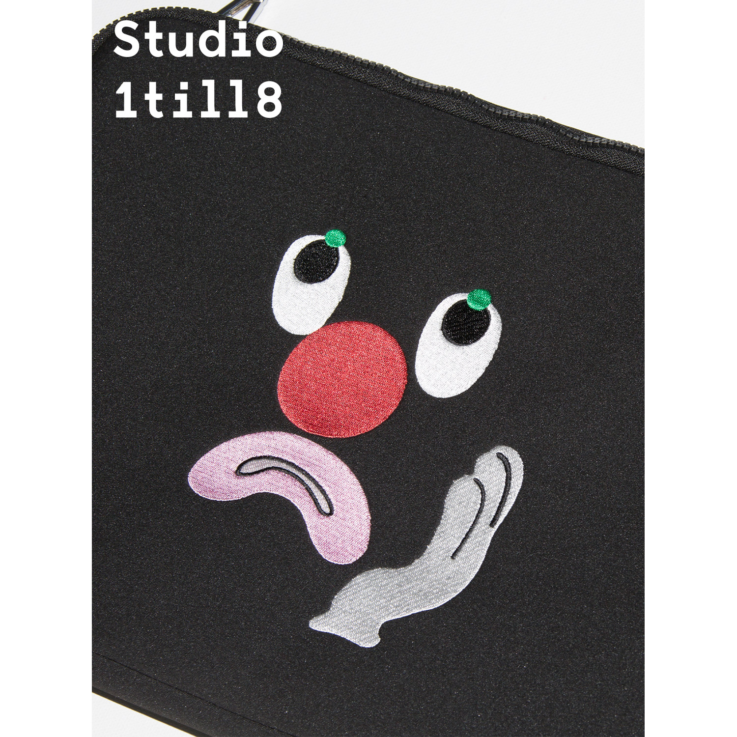 Studio1till8 牙痛表情刺绣黑色电脑包单肩包斜挎包女可调节肩带