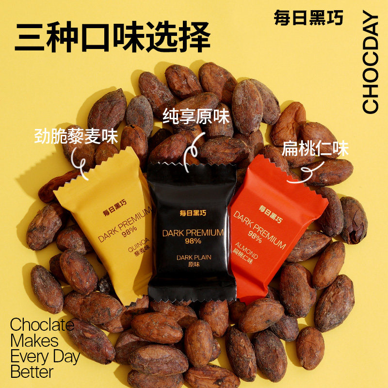 比比赞黑巧克力100%纯可可脂o0无添蔗糖减低黑巧糖果零食批发脂卡