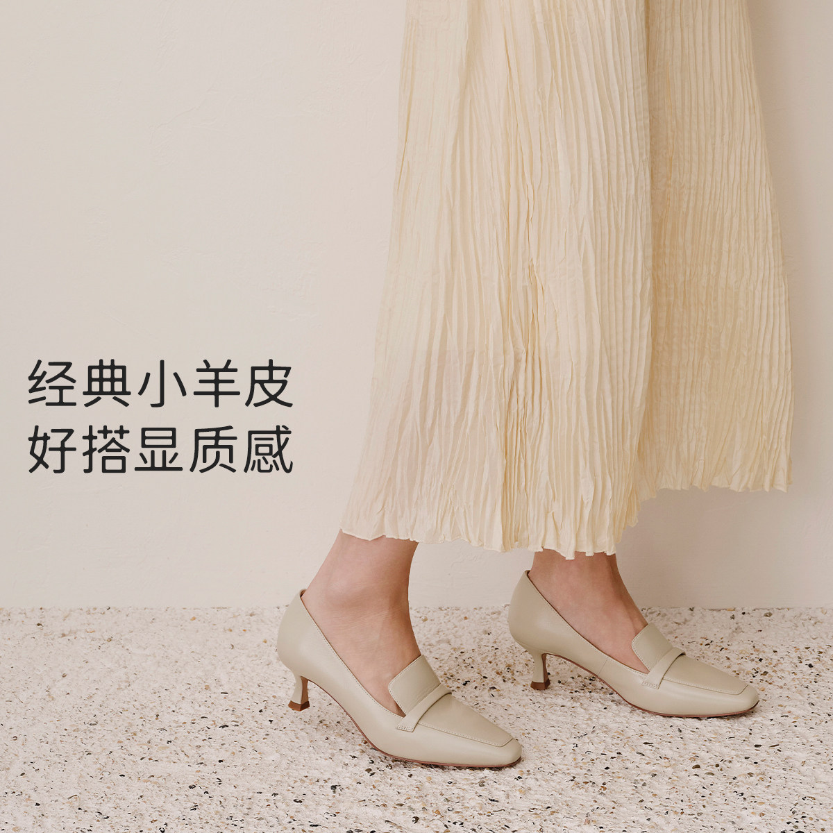 女单鞋 百思图26春新款 英伦豆豆鞋 miu系乐福鞋 UXE01AA6 绒面羊皮鞋