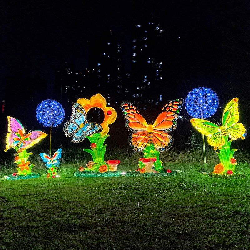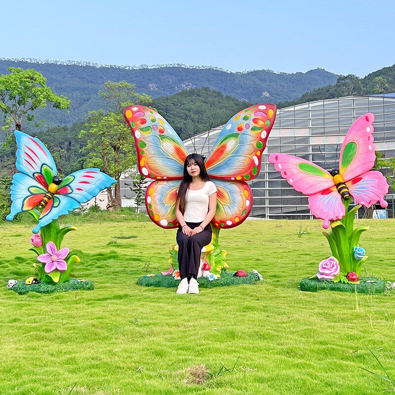 户外仿真发光蝴蝶雕塑草坪景观装 饰打卡拍照花海园林小品植物摆件