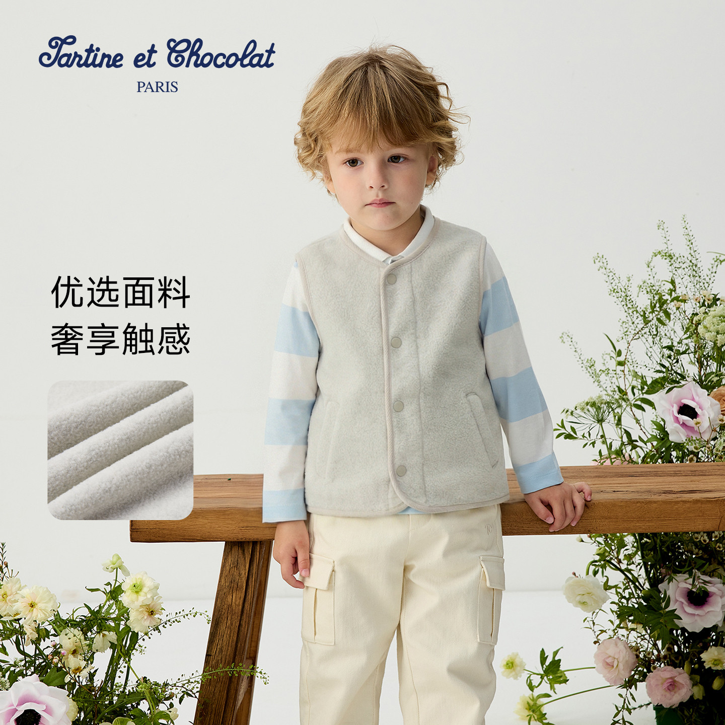 tartineetchocolat法国巧克力童装 男童马甲外套两件套 26春夏新款