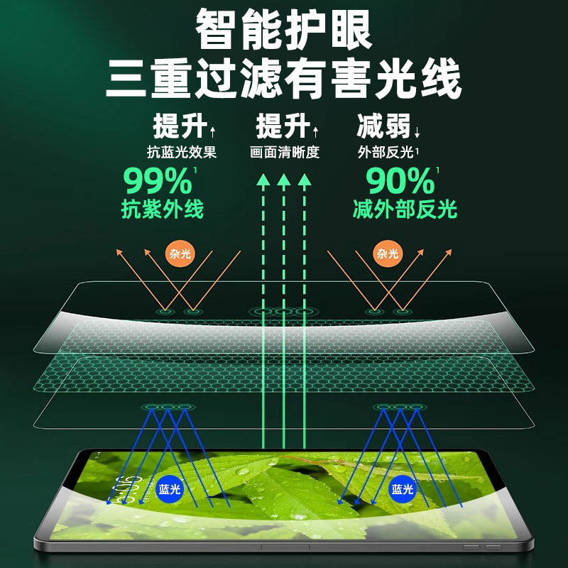 2024绿光 5磨砂9贴膜11电脑13屏幕8保护贴膜12.9类纸膜2025 iPad钢化膜air6 7苹果10.9pro9.7平板10.2寸mini4