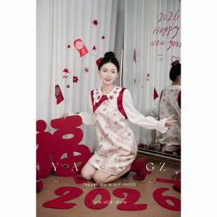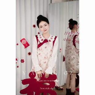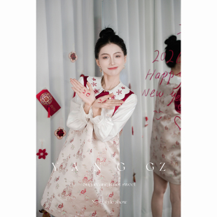 2026国风新款 YANG 新中式 瑶瑶玉兔 设计感可拆毛领连衣裙女
