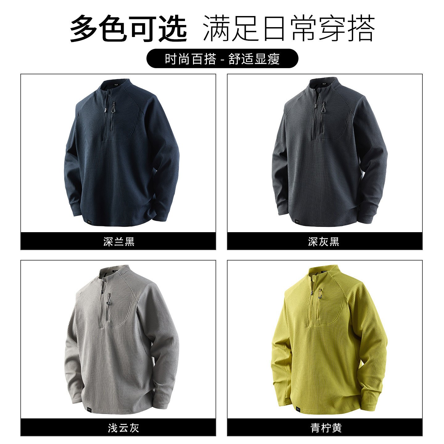 华夫格男士 FIVECM美式 运动长袖 t恤男款 宽松上衣 2026春季 5cm
