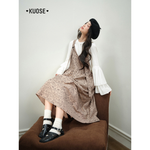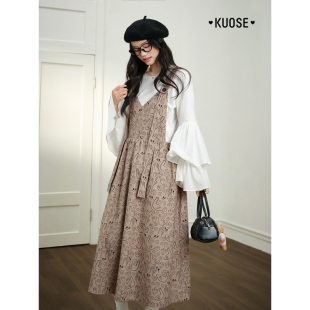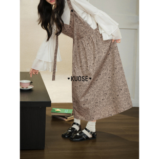 阔色卡其色背带裙吊带背心裙26春季 穿搭设计感连衣裙新长裙子女秋