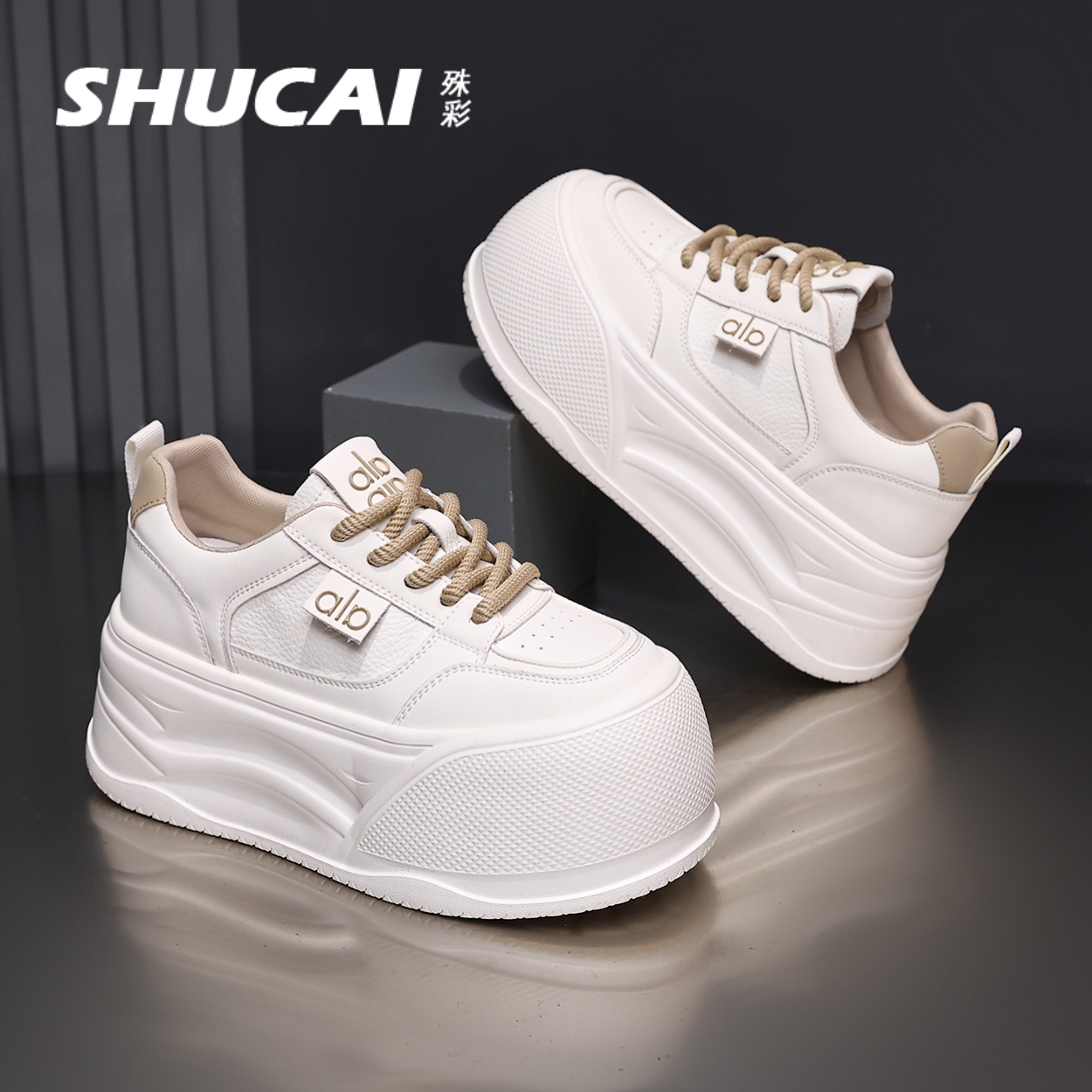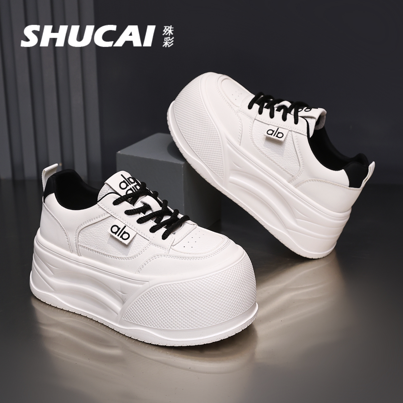 休闲运动鞋 殊彩7CM厚底增高时尚 小个子百搭板鞋 2026春款 潮 小白鞋