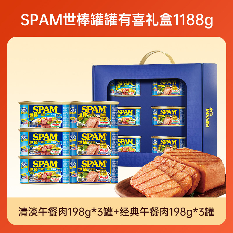 3个愉快老火锅专用猪肉340g肉肉制品肉类罐头罐头肉礼盒午餐火腿