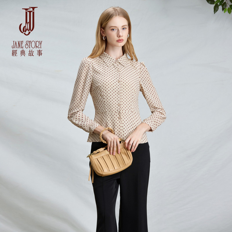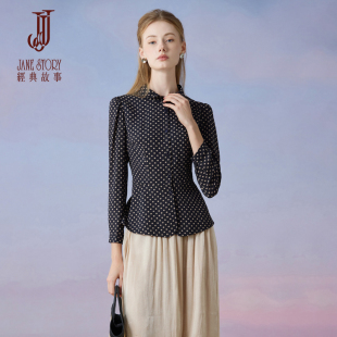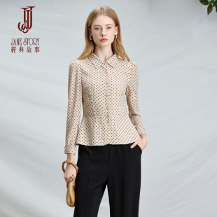 春季 经典 女上衣2026新款 波点衬衫 洋气时髦雪纺衬衣 故事收腰长袖