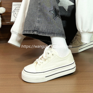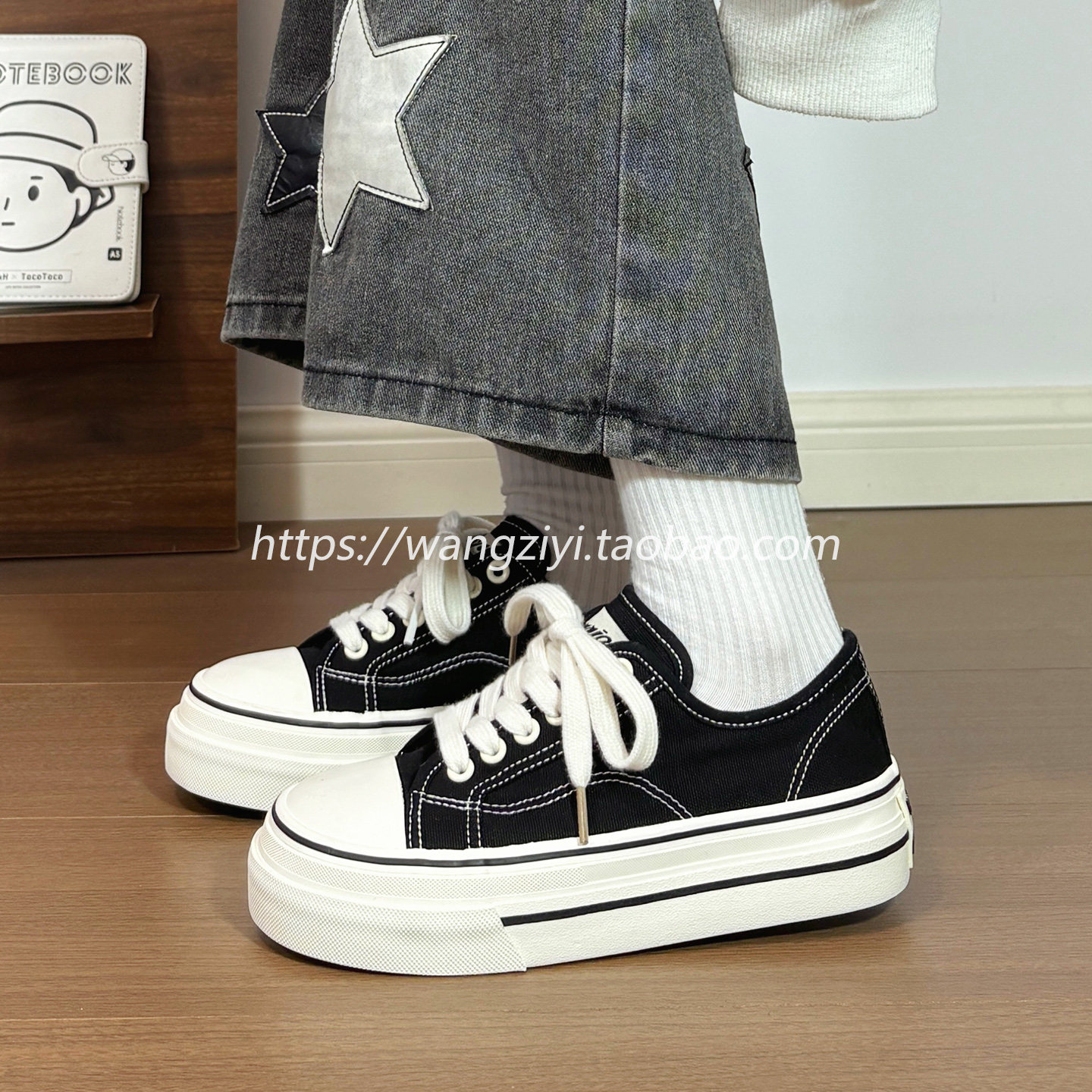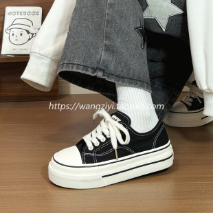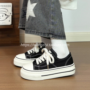 学生百搭厚底轻便板鞋 新款 原创 女复古2026春季 回力休闲黑色帆布鞋